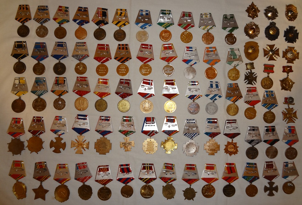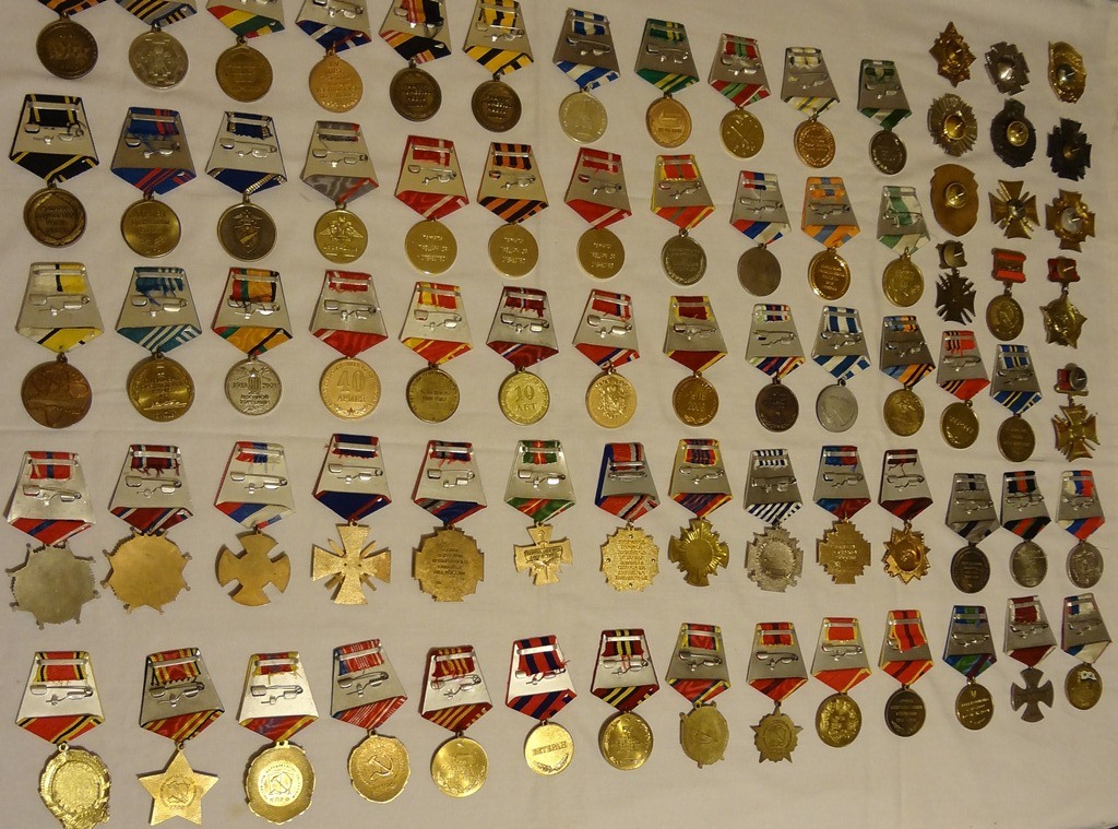 По РФ. Медали и знаки в количестве 76 штук. Все тяжелые, много с эмалями - все в отличном состоянии. Особо не разбирались, есть - Умалатова, Коммунисты, Ведомственные, Казаки, разные годовщины. Может кому надо - желательно все вместе,