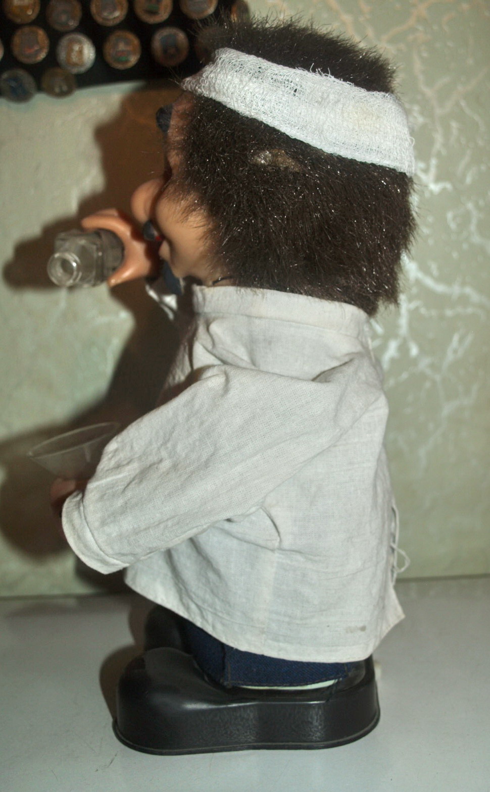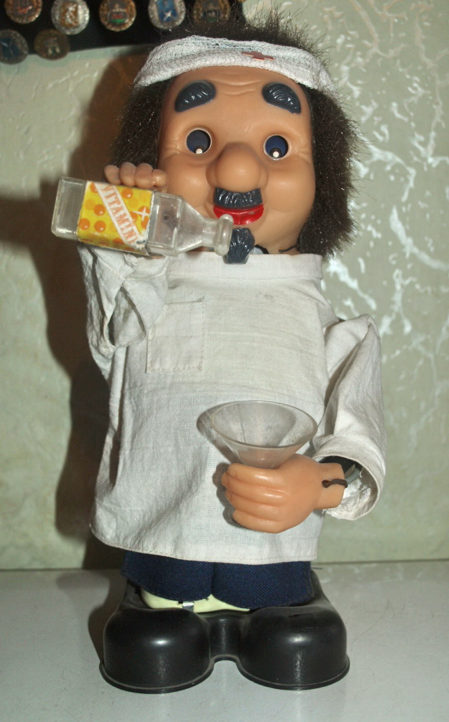 Доктор Айболит механический. В рабочем состоянии. Советская игрушка. Работает от квадратной батарейки. Есть небольшое повреждение с низу где крепление.