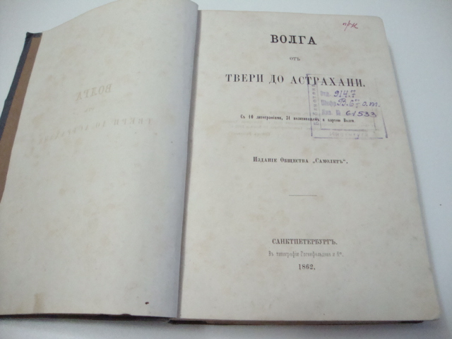 Боголюбов. Волга от Твери до Астрахани. С 10 литографиями,31 политипажами и картой. Спб. Издание Общества`Самолет`. Типография Гогенфельдена и Ко. 1862г. VIII, 415 стр. Издательский переплет эпохи с золотым тиснением. Полная комплектация.