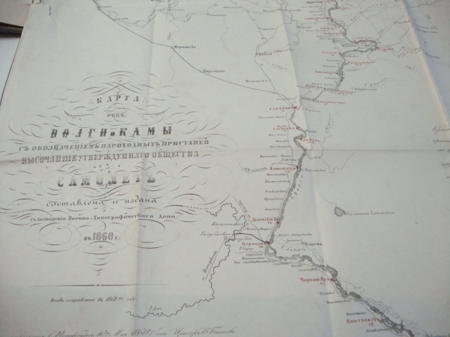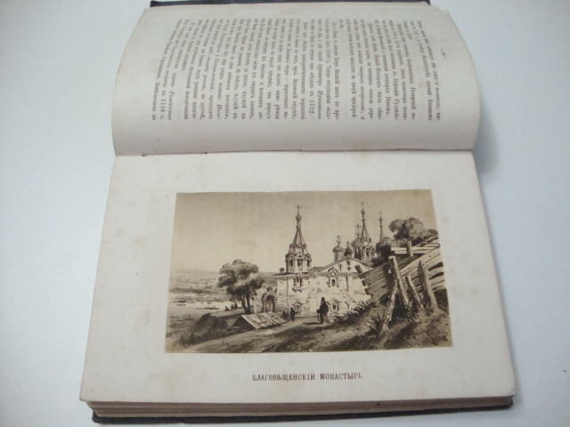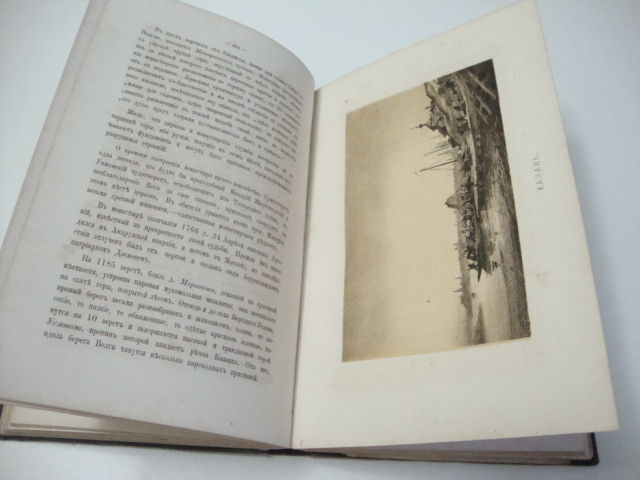 Иллюстрированный литографированный шмуцтитул. Иллюстрации с видами Углича, Ярославля, Чебоксар, Саратова, Астрахани, церквей и монастырей выполнены в технике тоновой литографии. Раскладная карта реки Волги и Камы с обозначением пароходных пристаней.