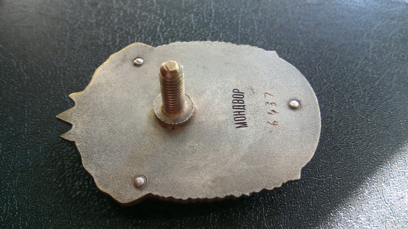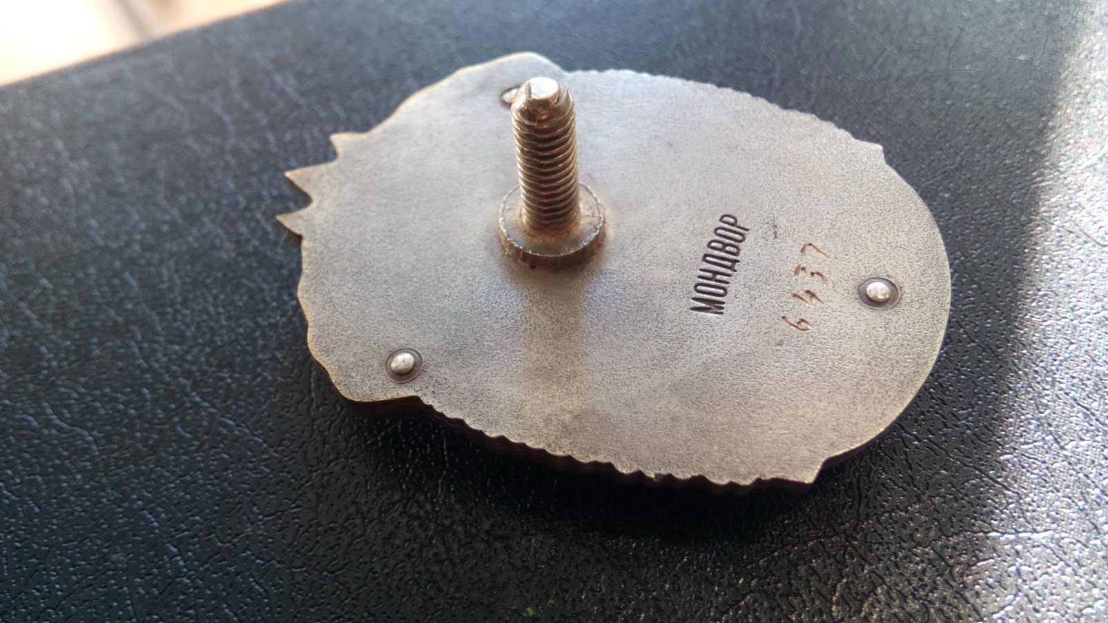 Основа знака - натура (переделка с "подвеса"). Знак сборный (на клепках), с прорезью (как в оригинале).