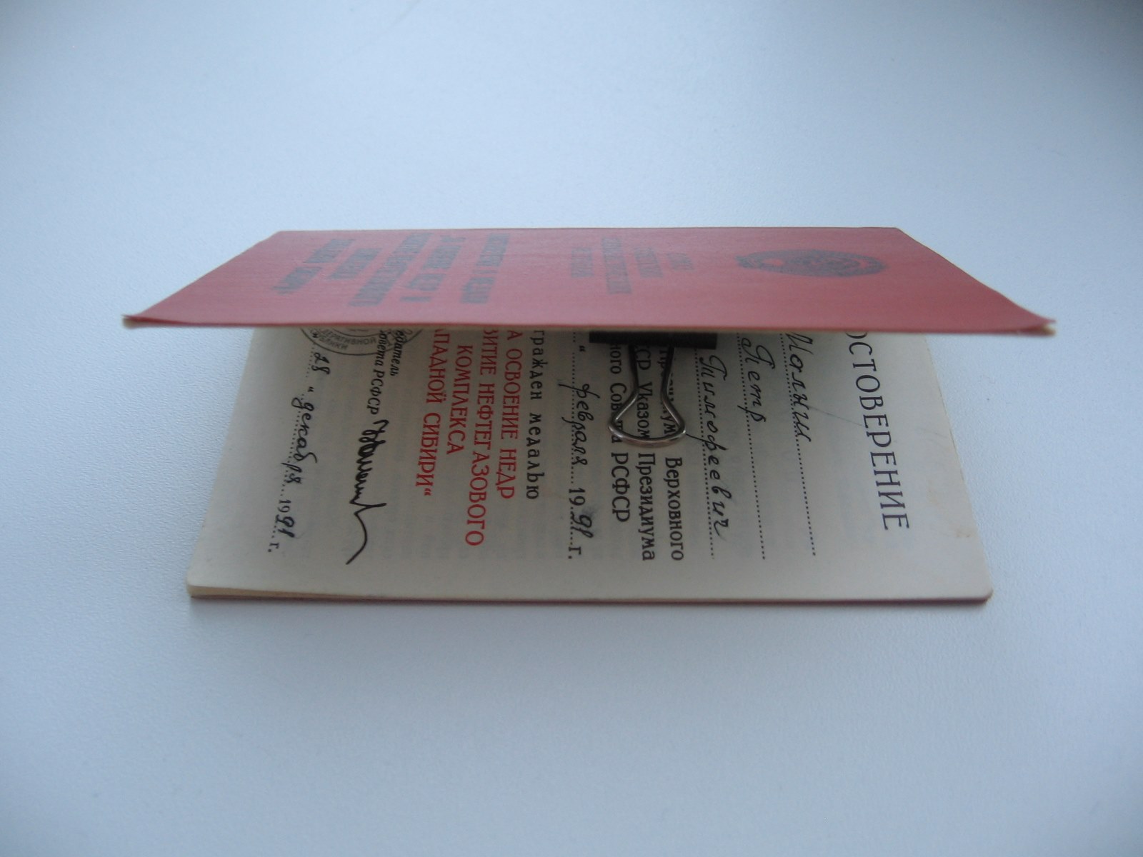 Доставка за счёт покупателя только по Р.Ф. Редкий документ с факсимиле Ельцина. Корка гладкая. Из последних вручений. Дорого.