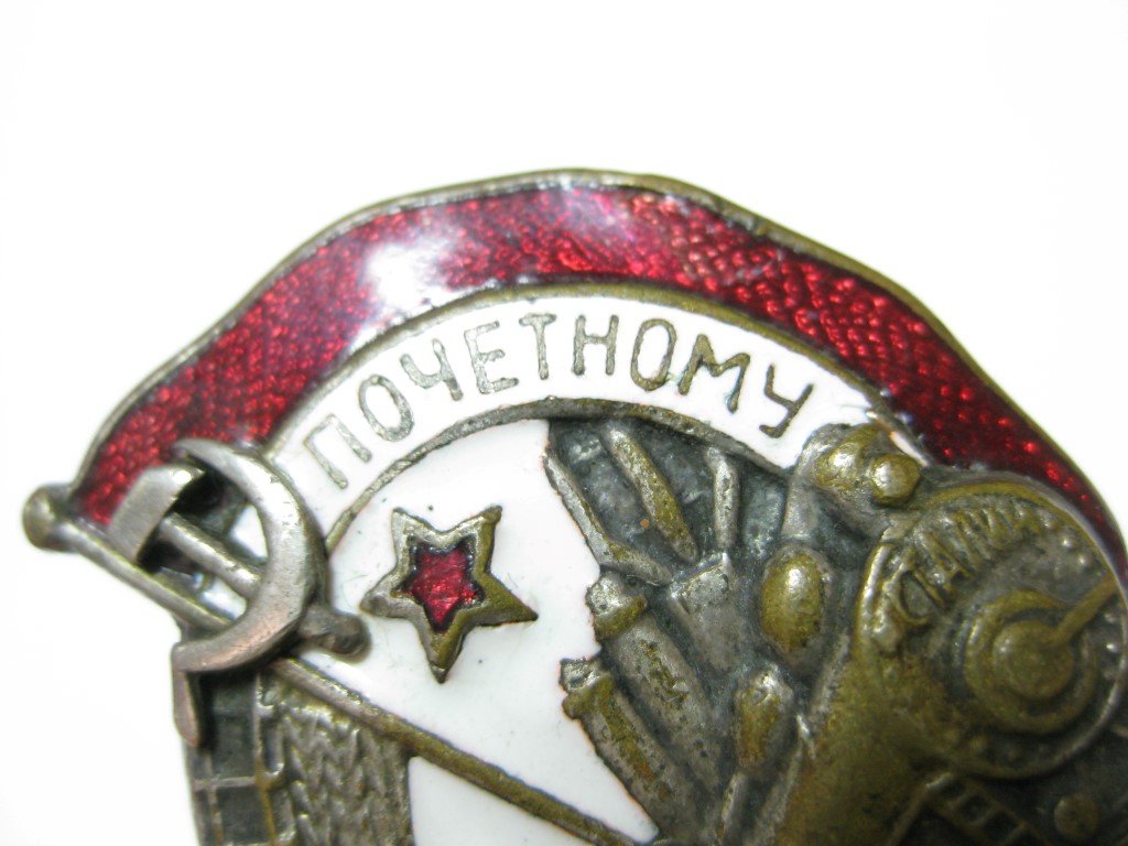 Знак имеет чешуйку на знамени, и скольчик на ленте