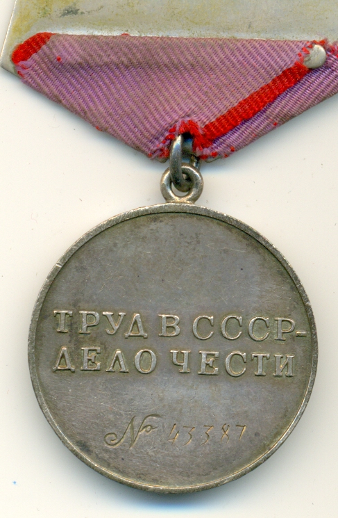 Медали Серп и Молот, За Трудовую Доблесть, За Трудовое Отличие, За Доблестный Труд в Великой Отечественной Войне,За Восстановление Предприятий Чёрной Металлургии Юга, За Восстановление Угольных Шахт Донбасса, За Освоение Целинных Земель, За Строительство БАМ, За Преобразование Нечерноземья РСФСР, За Освоение Недр и Развитие Нефтегазового Комплекса Западной Сибири, Ветеран Труда