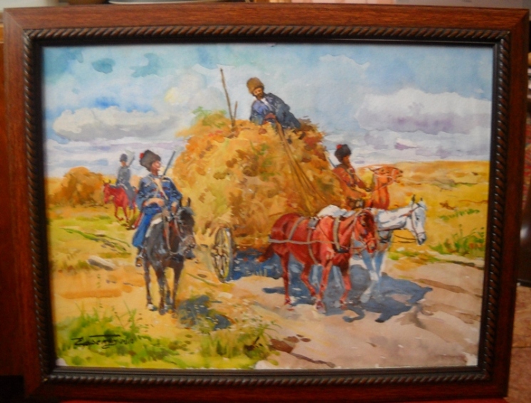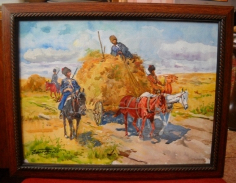Акварель Ефремяна В.А. "Возвращение с поля". Бумага, размер 30х40 см