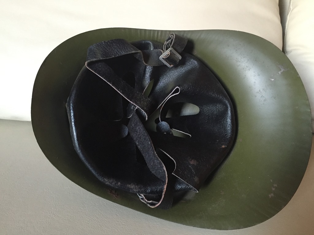 Зелёная - в хорошем состоянии, родной подшлемник, краска местами слезает.