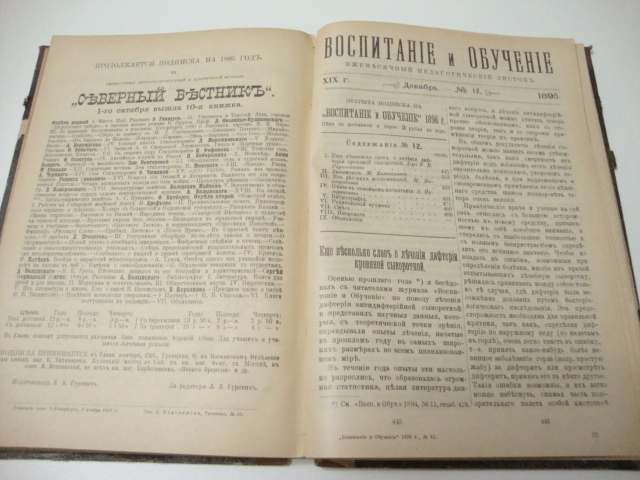 Воспитание и обучение. № 1-12. за 1895 г. Ежемесячный педагогический журнал. Годовой комплект. СПб. Типография Евдокимова.