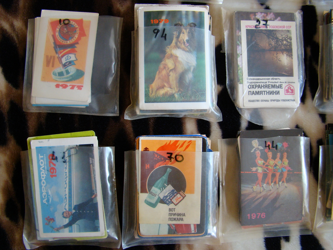 Разложены в пакетики по примерной тематике (на пакетиках (маркером) кол-во шт.).