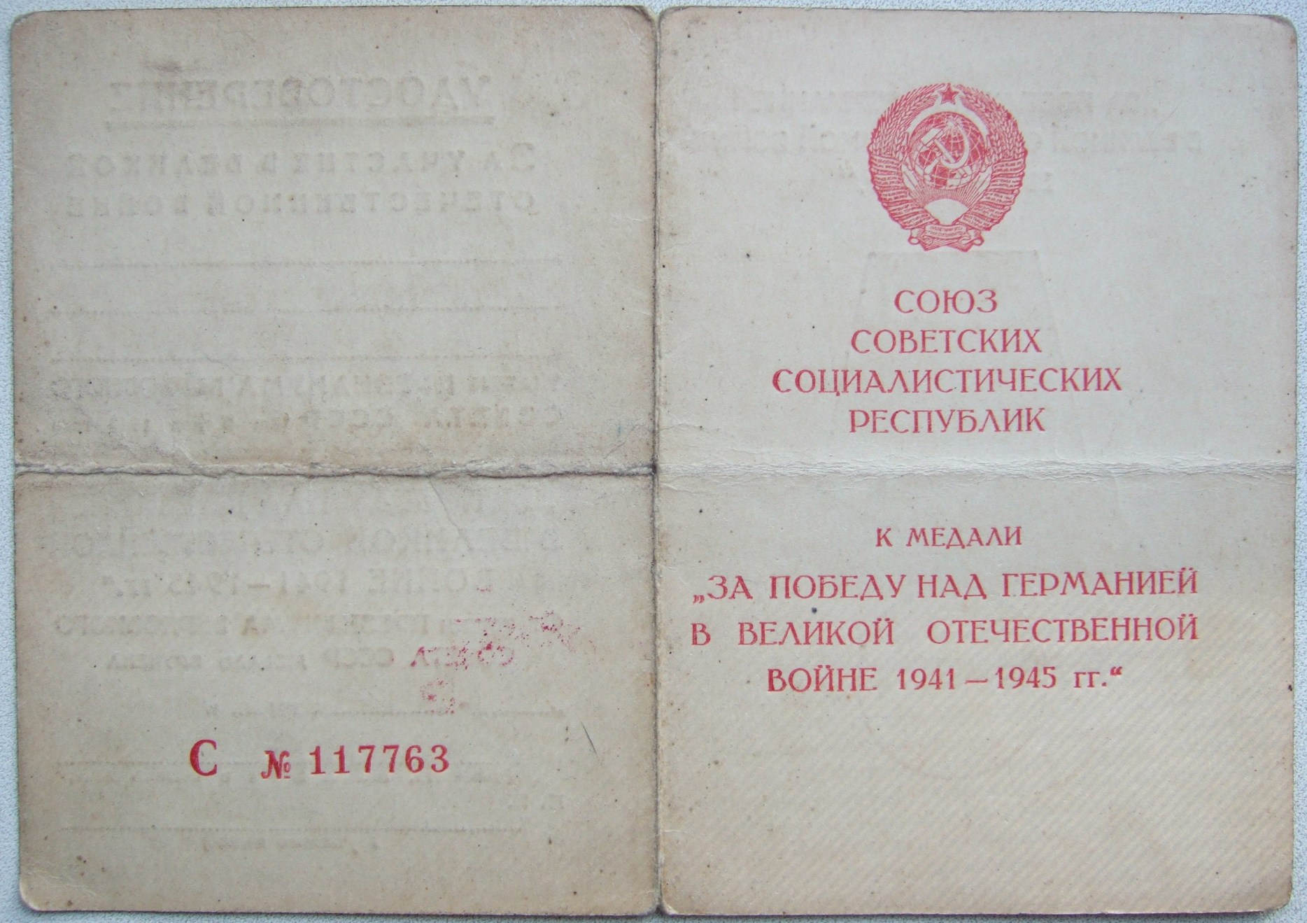 Документ в хорошем состоянии, есть поперечный перегиб.