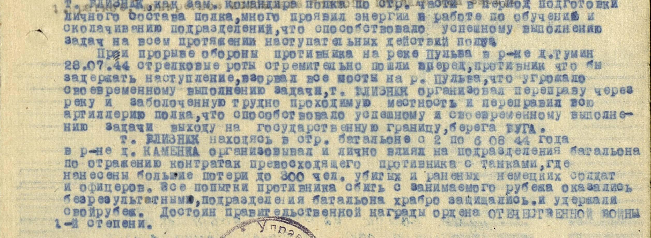 Близнюк Николай Иванович 1917г.р. кавалер есть на подвиге
