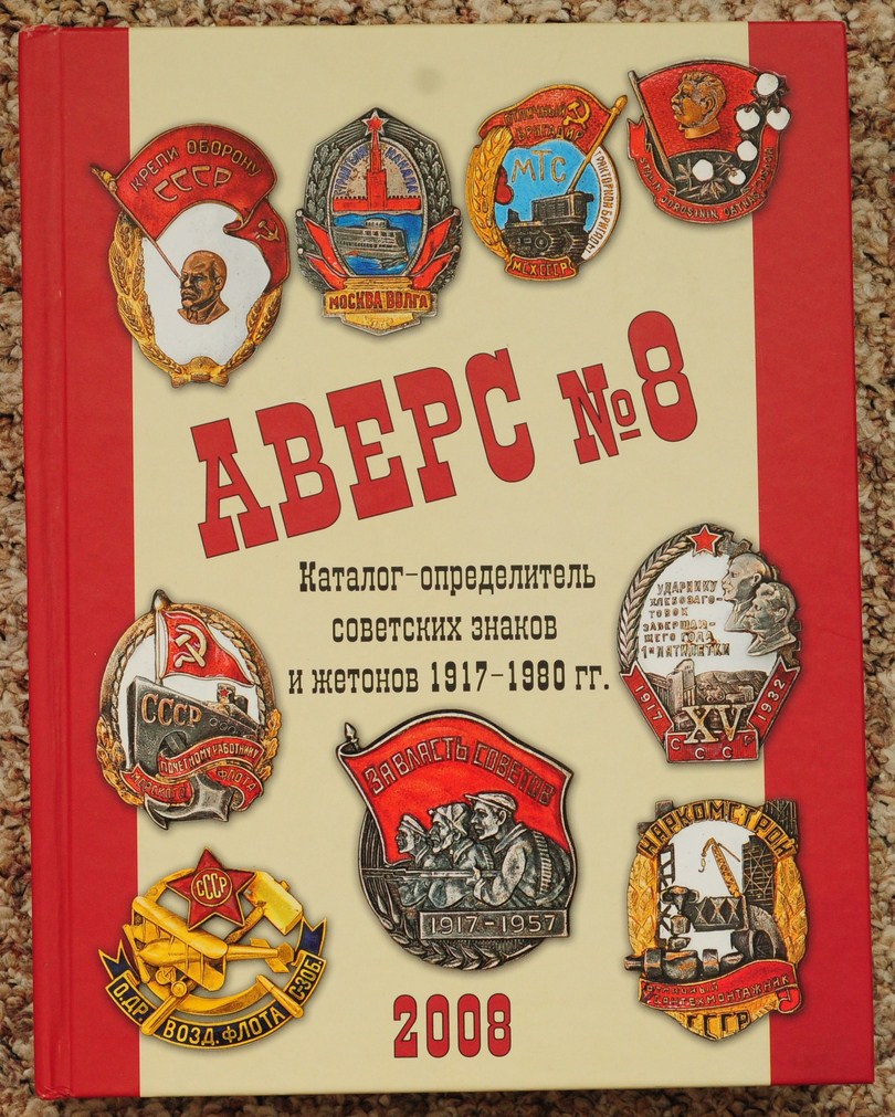 Москва 2008, 736 стр., цветные изображение, твердый переплет. Это издание является логическим продолжением каталогов из серии "Аверс" в части советской фалеристике. Каталог посвящен знакам и жетонам Советского периода от 1917 года до 70-80 годов XX и охватывает наиболее популярные темы среди фалеристов. Основная часть представленных в каталоге знаков является наградными. Эти знаки фактически представляют собой наградную ведомственную систему, которая параллельно существовала с государственной наградной системой. В каталоге приведено более 5000 изображений знаков, жетон, документов, грамот советского периода.