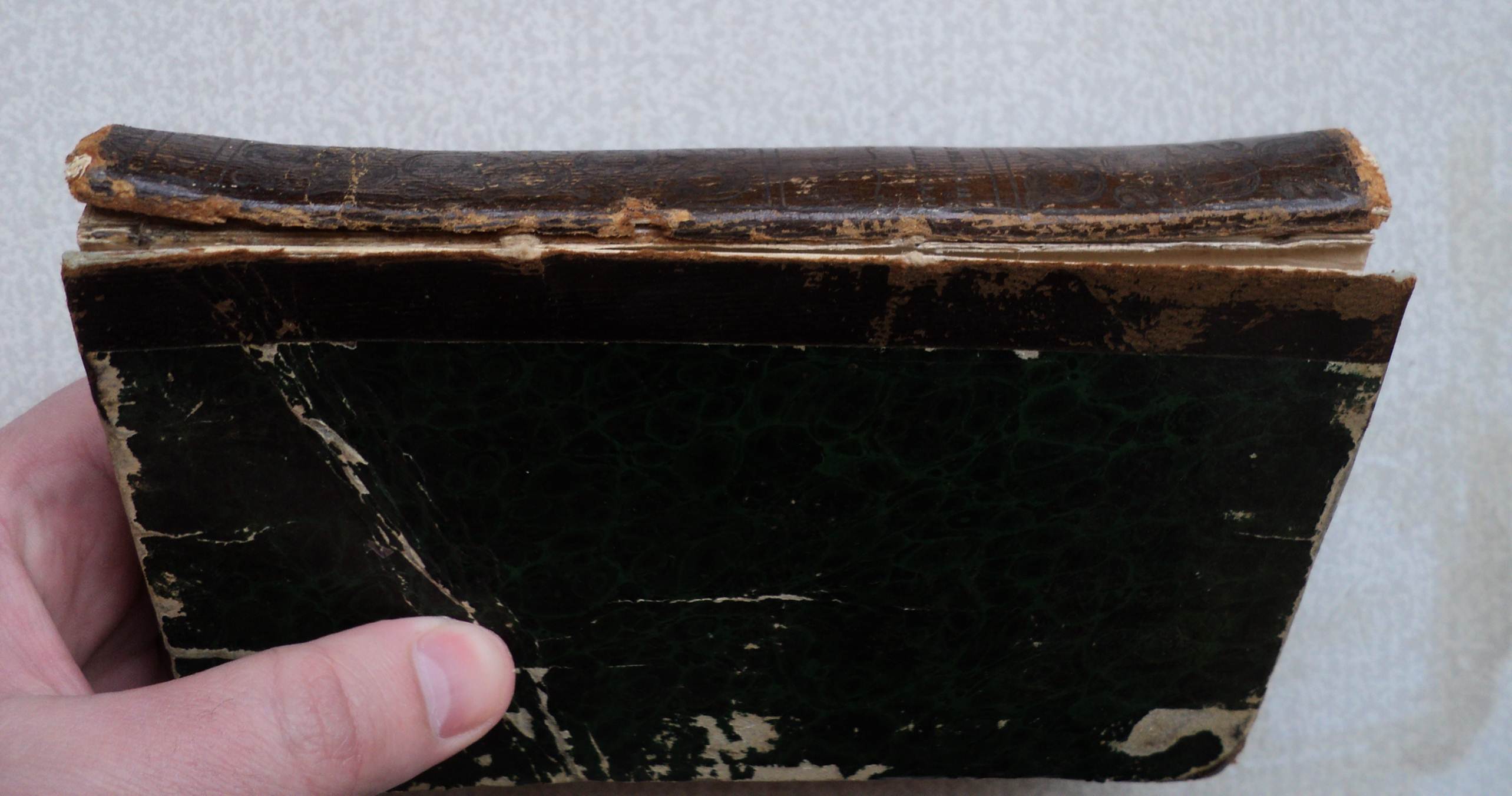 Верхняя крышка переплета отделена от блока.