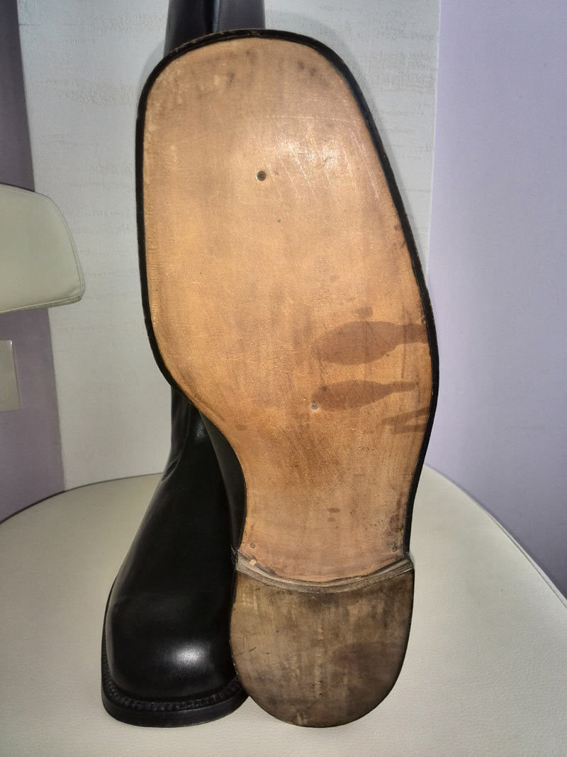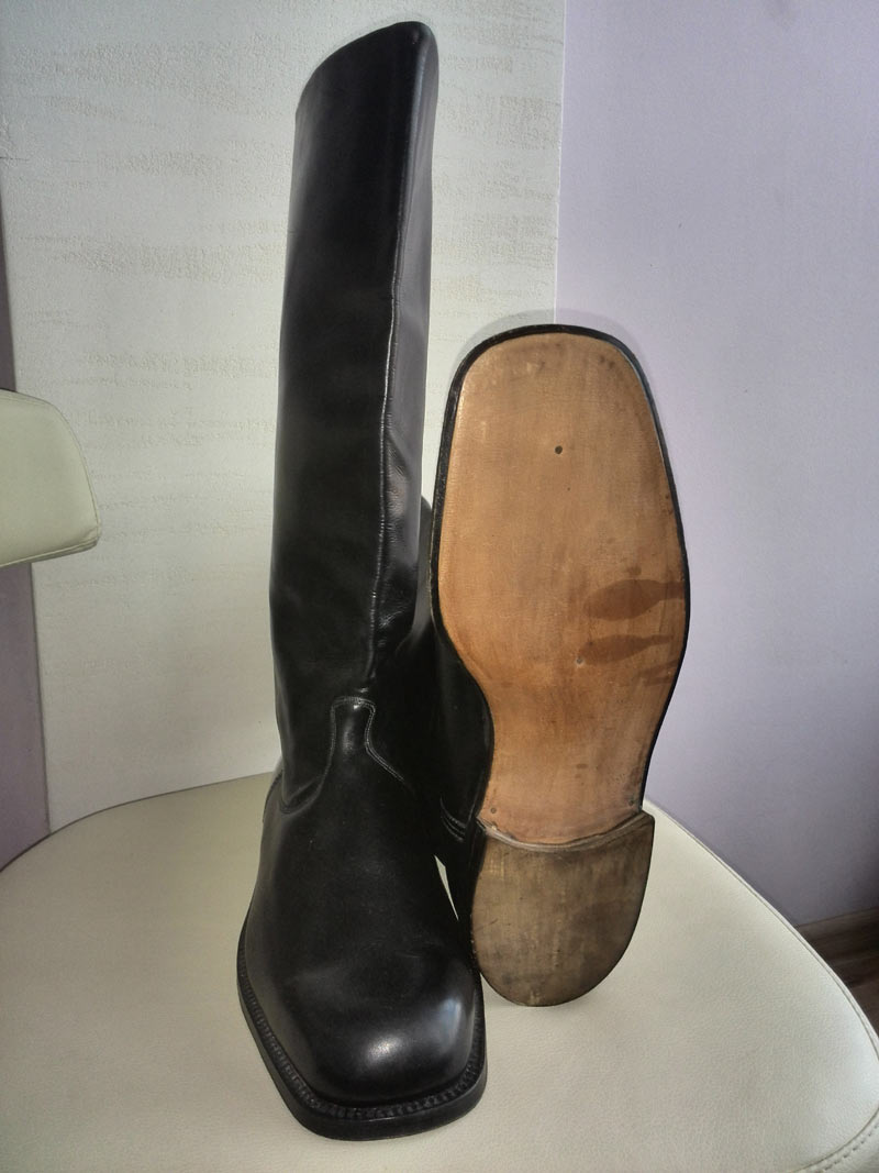говорит ее отец был сапожником очень знатным и сделал эти сапоги 3 пары - для Маршала в 1946 году!