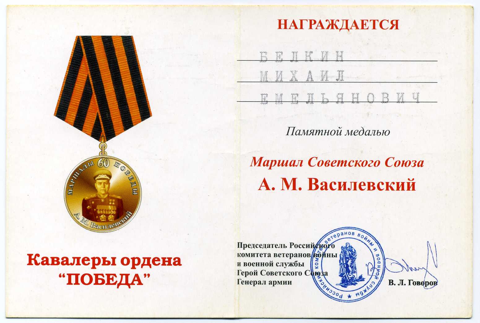 Живая подпись ГСС Говорова В Л (сына маршала Говорова)