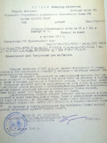 На Нечаева командира звена Отдельного полка ГВФ