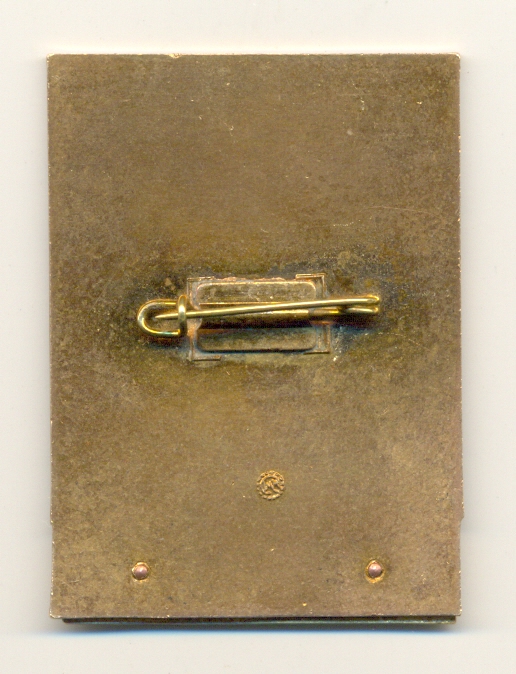 Латунный, с горячей эмалью. Размер: 48,4 мм на 35,4 мм. Вес: 28,4 гр. Монограмма ММД в зеркальном отображении.
