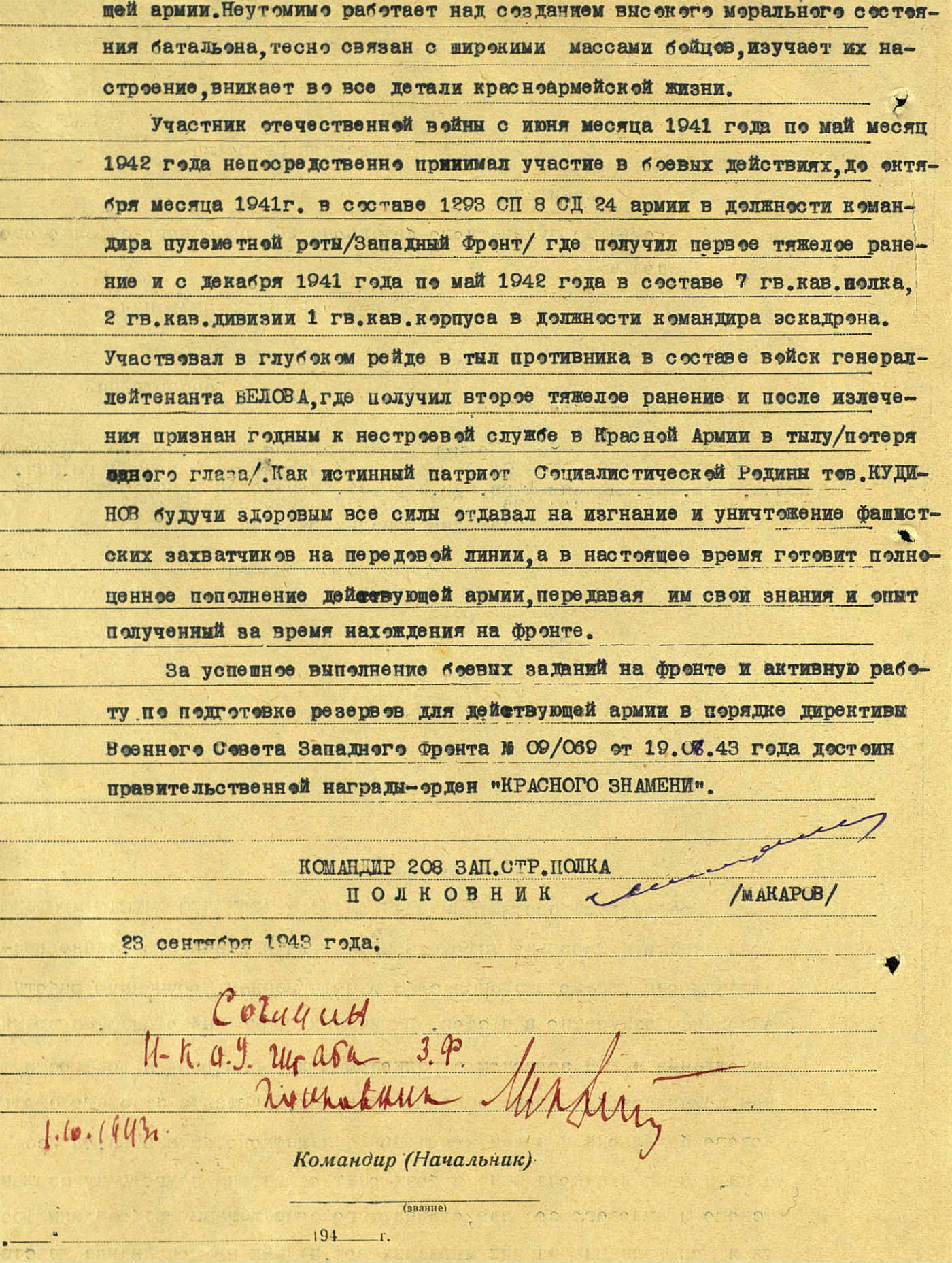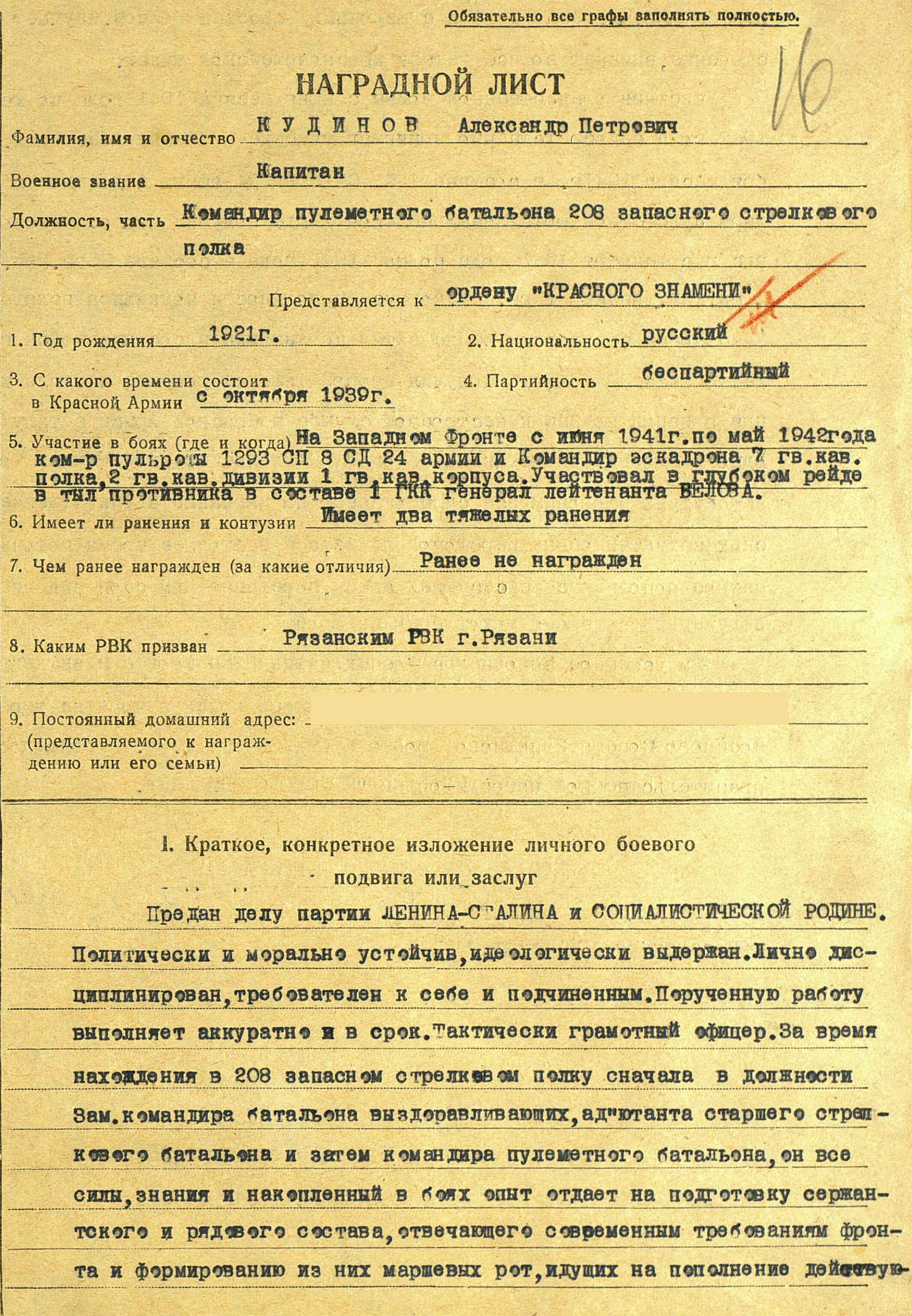 Состояние показал. Одна награда за войну из за ранения. В наградном все написано. О рейде корпуса Белова можно почитать здесь http://www.e-reading.club/chapter.php/9 ... 942_g.html