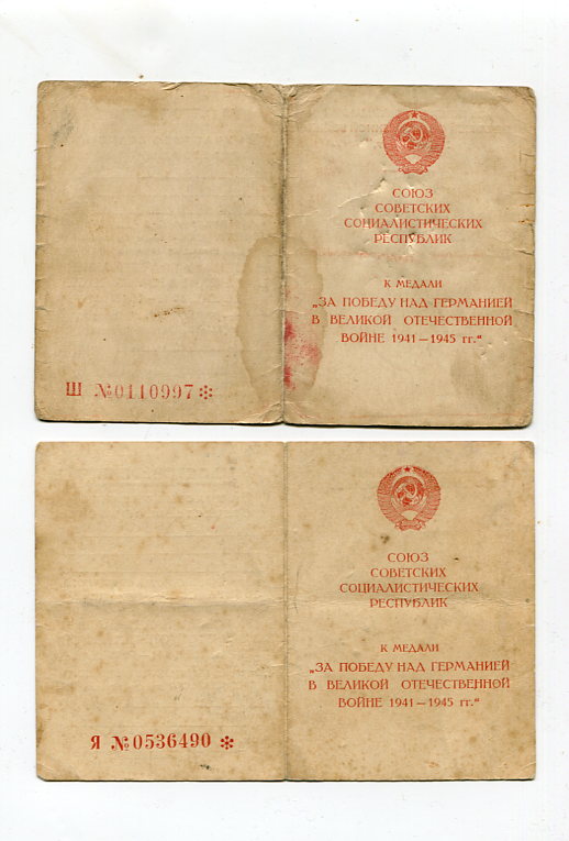 Орденские книжки, удостоверения к медалям, Грамоты, удостоверения личности, извещения, справки и другие документы, литература