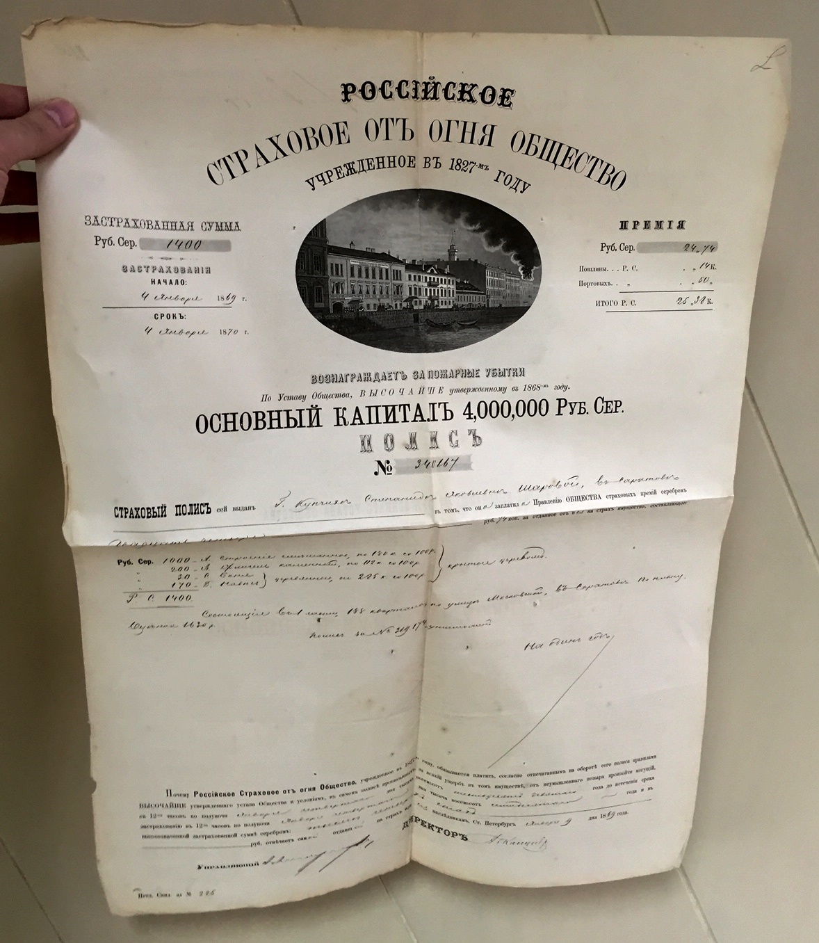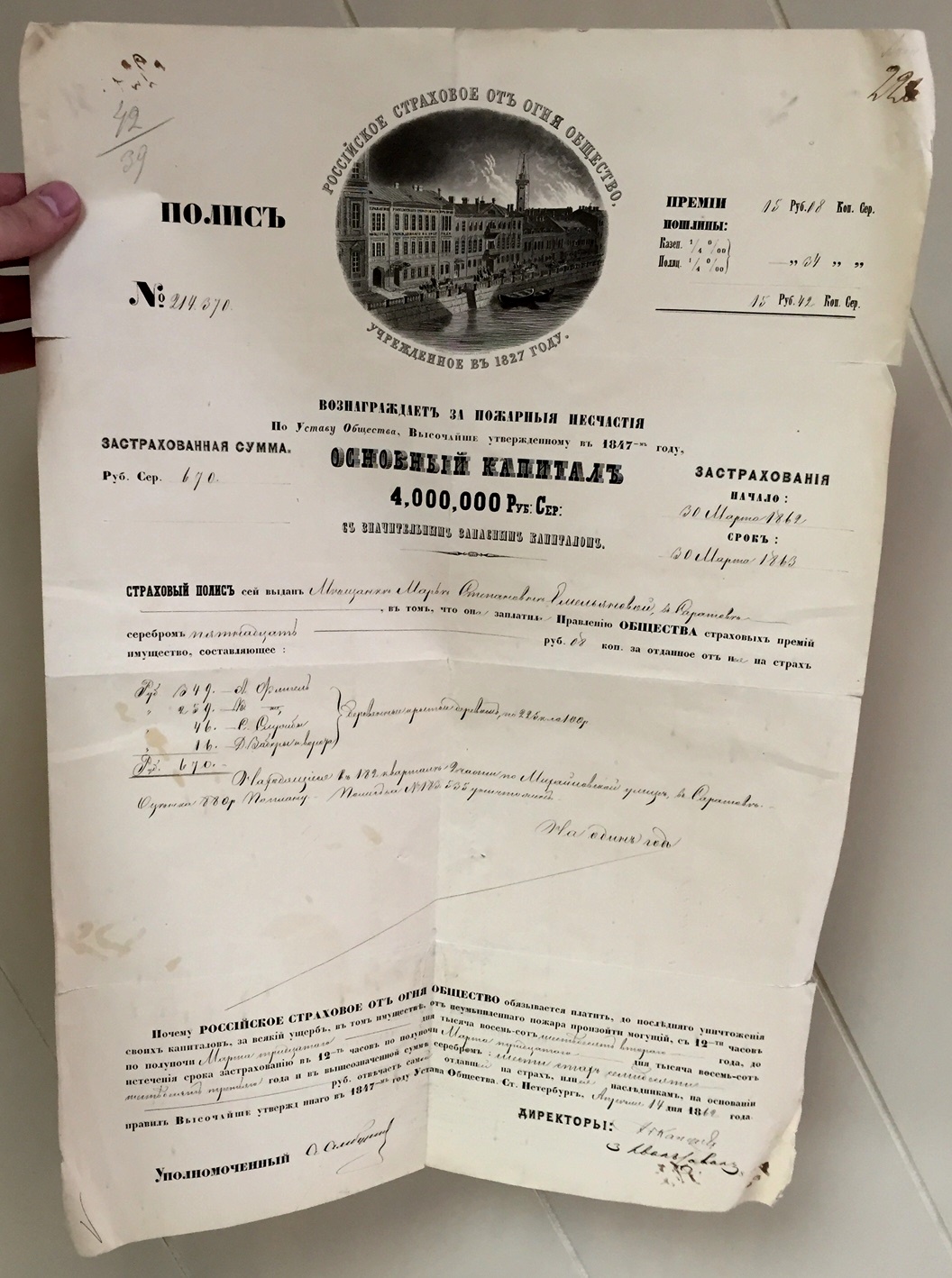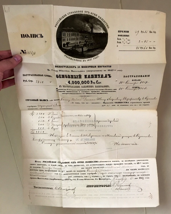 Продается мини-коллекция страховых полисов 1-го Российского страхового общества.