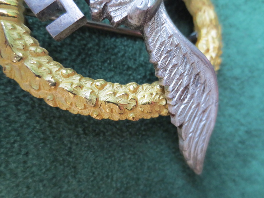 Время изготовления данного знака 1940 - 1942 гг. Размер: высота (по венку) 54.43 мм., ширина (по кончикам крыльев) 63.70 мм., ширина венка 42.37 мм. Вес 39.90 гр.