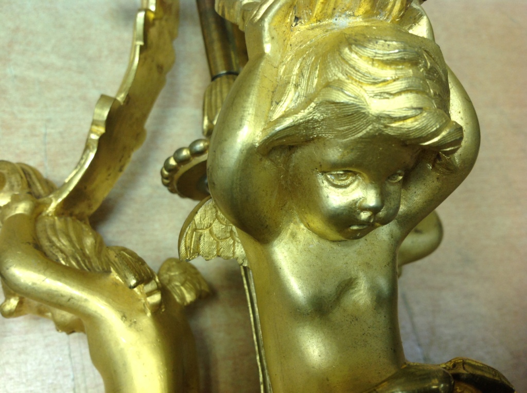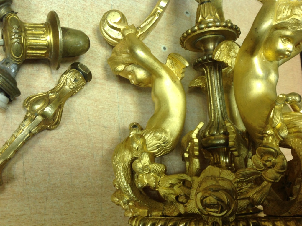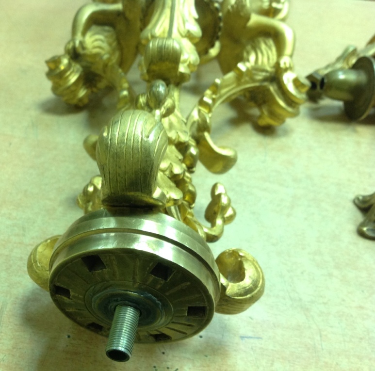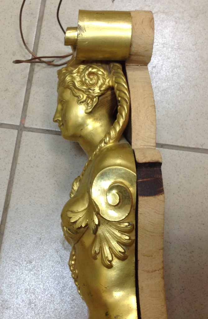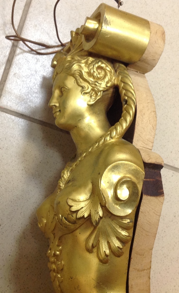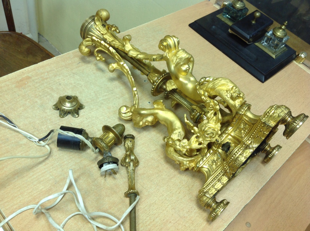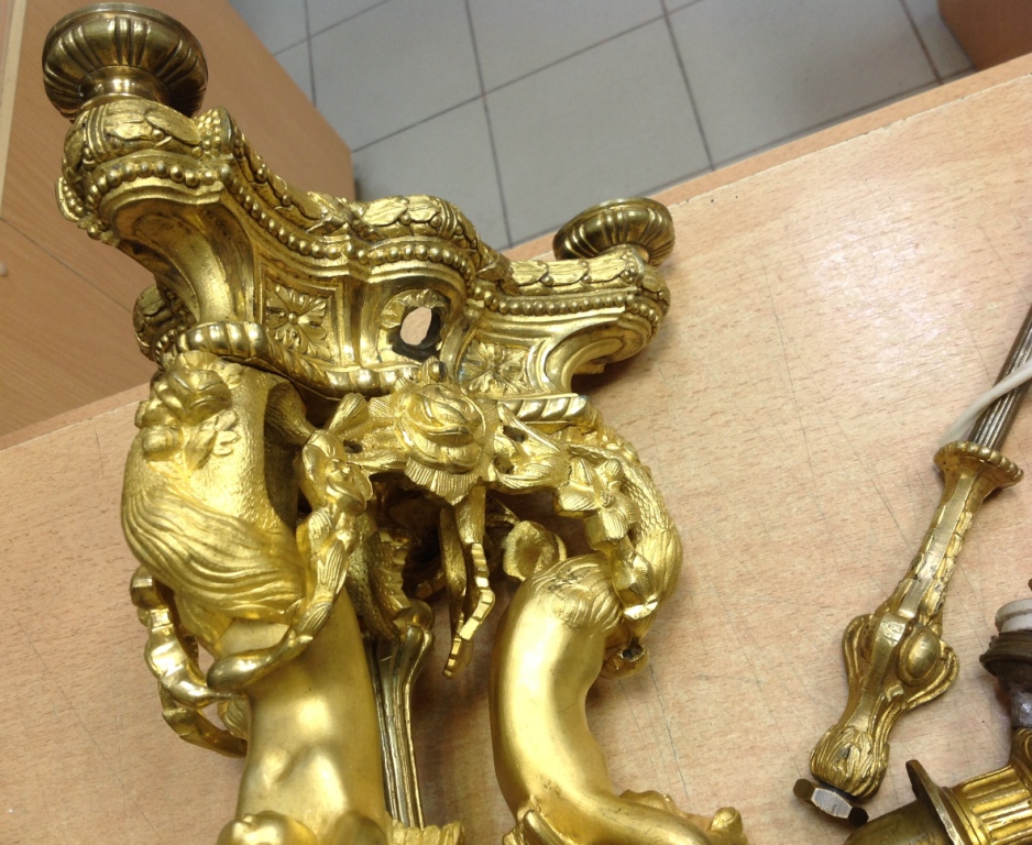 Лампа громадная -высота 49 см.Вес около 11 кг. Но надо делать электрику-и абажур подбирать..И 2 фигуры золоченых...закреплены на толстой фанере..Что то видимо выдумывали -изобретали..На одной зачем то канделябр приделали...Синий -это камень...по крайней мере очень похоже...Оникс? Высота конструкции фигур 82 см. Может кто знает-для чего эти фигуры? И может ли это хозяйство заинтересовать кого нибудь? Короче...предложите кому надо по РФ!