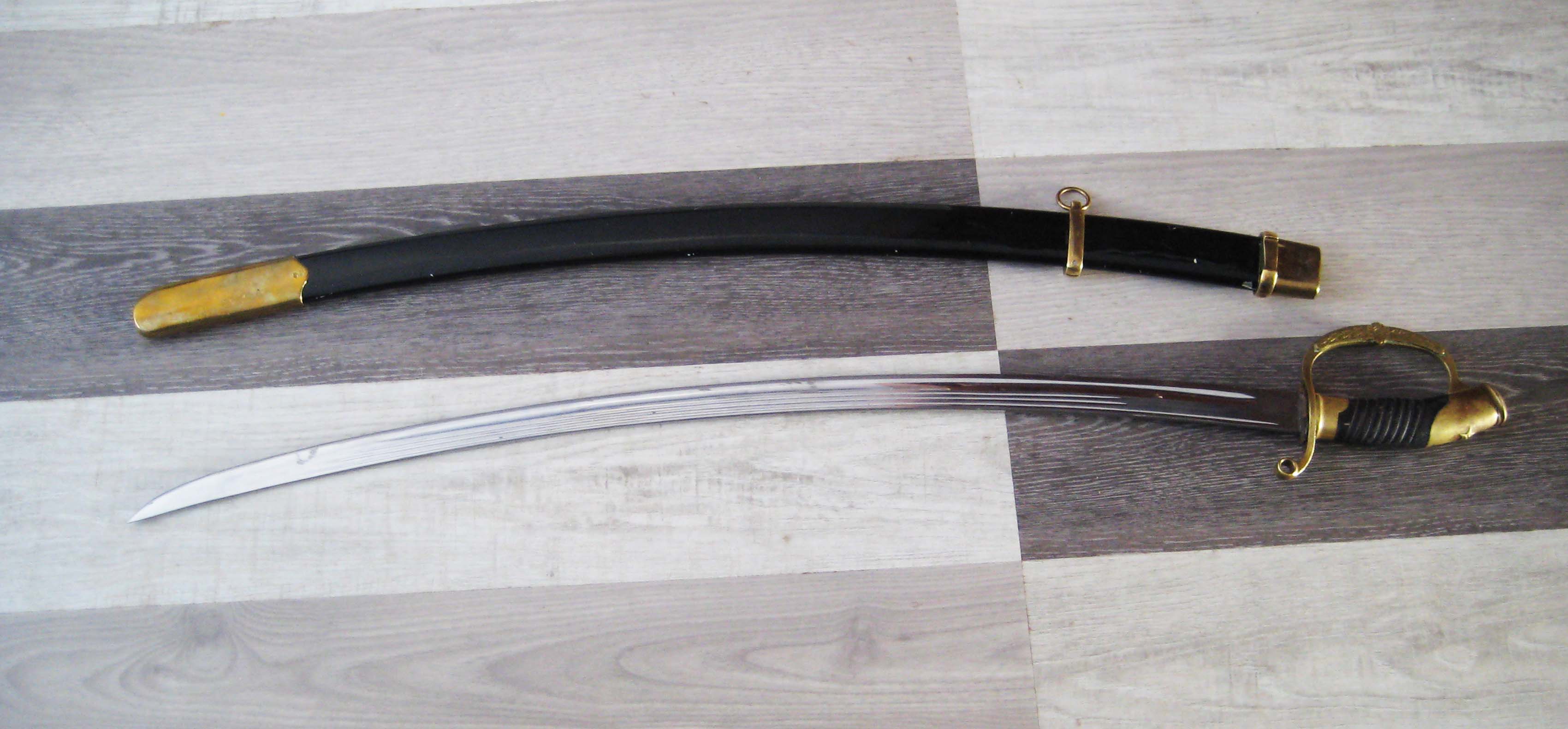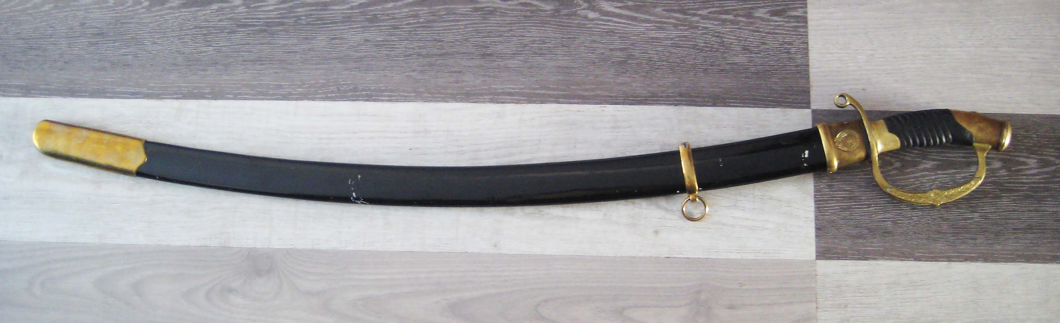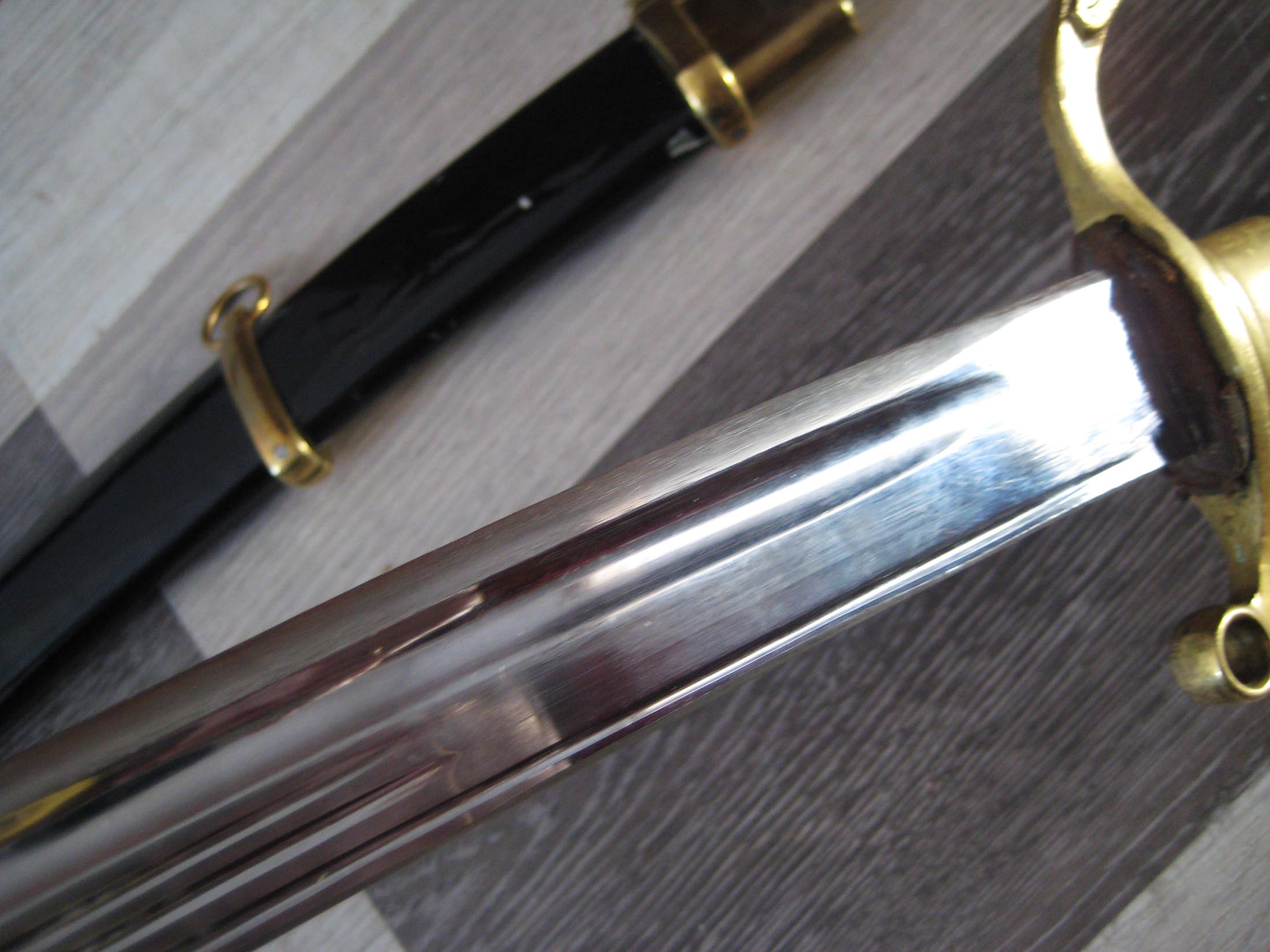 По РФ. Не разбирал. Какой год не знаю. Из недостатков - пытались наточить. Устье ножен - трещинка. Клейма на месте, ржавчины нет, ножны без особых потерь.