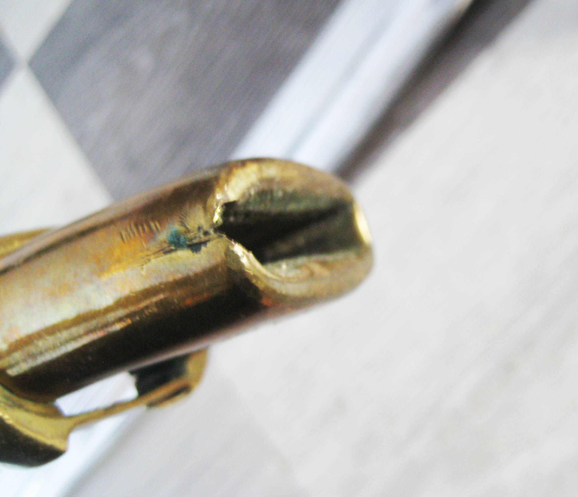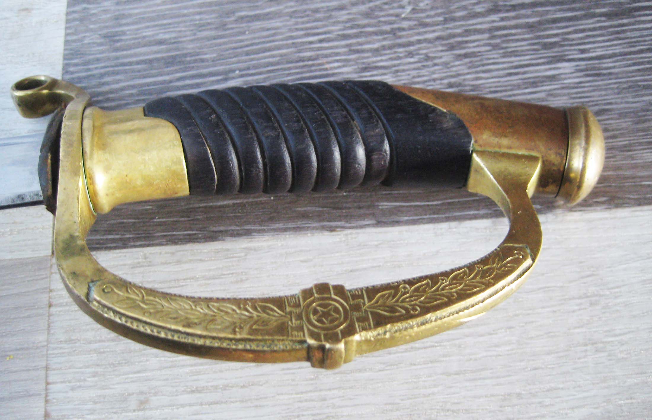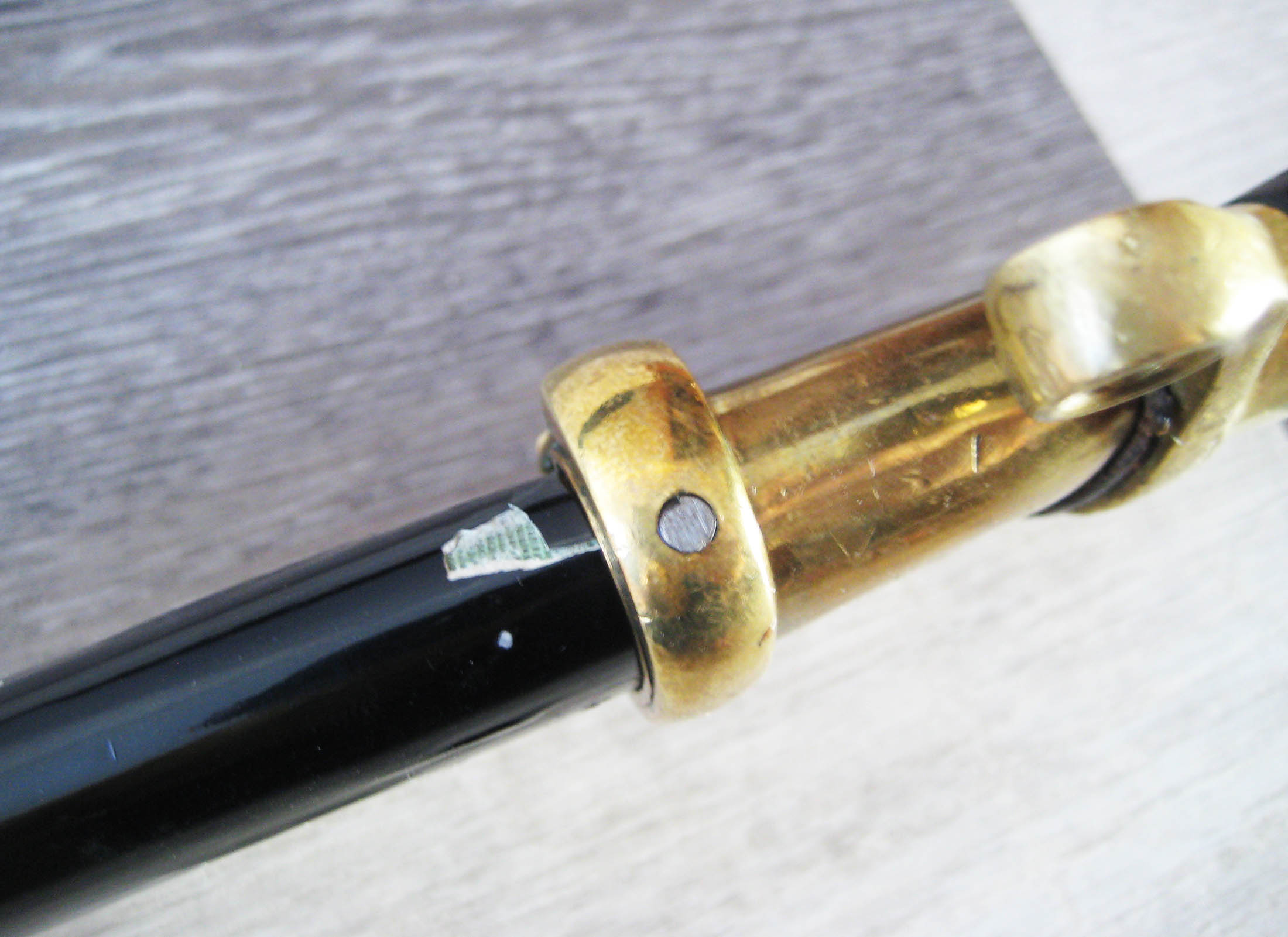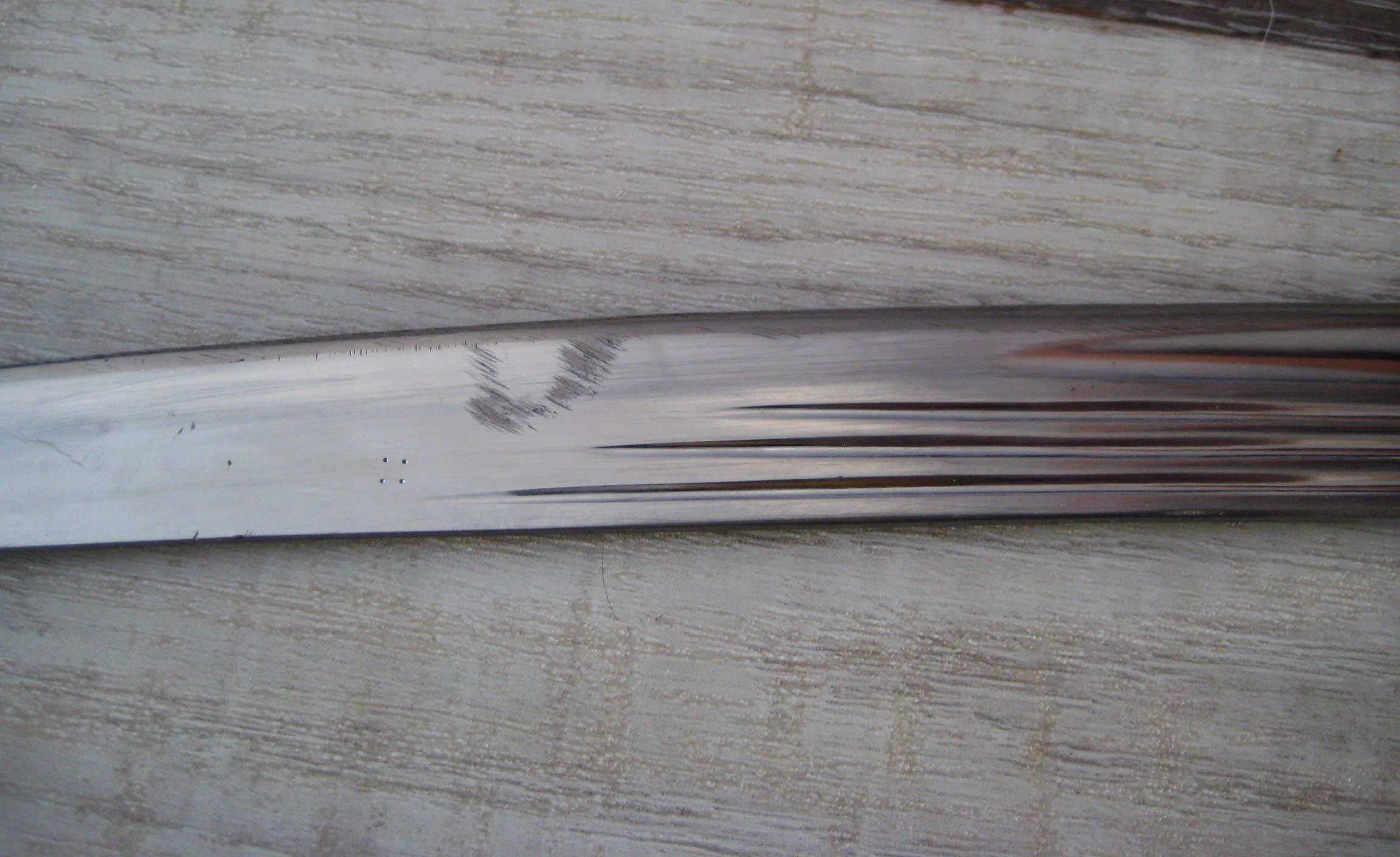 По РФ. Не разбирал. Какой год не знаю. Из недостатков - пытались наточить. Устье ножен - трещинка. Клейма на месте, ржавчины нет, ножны без особых потерь.