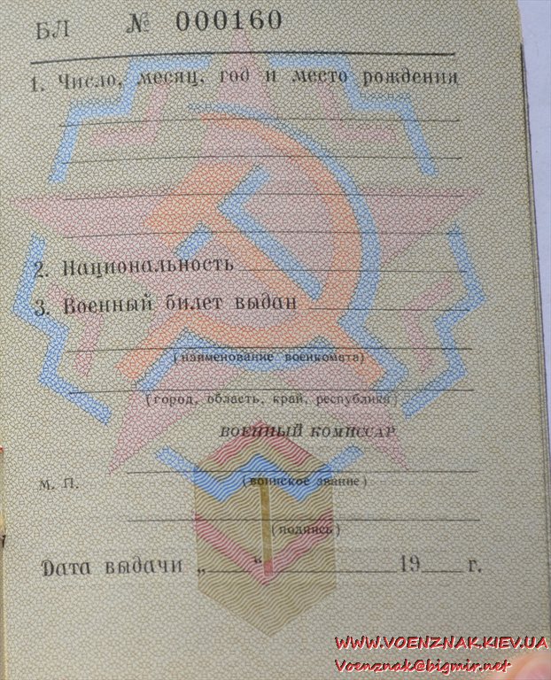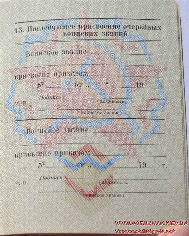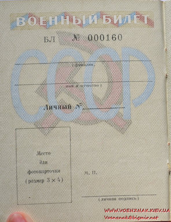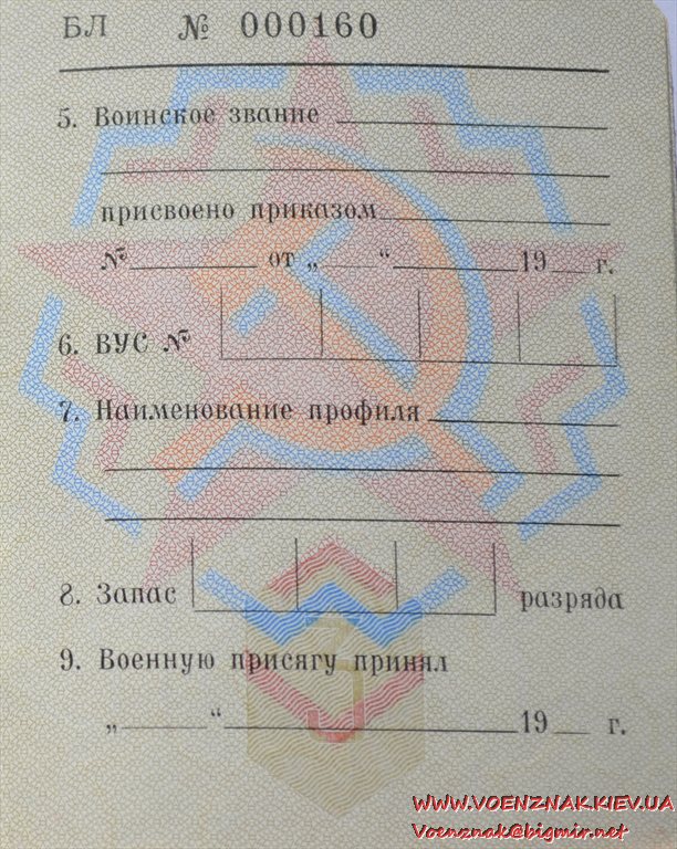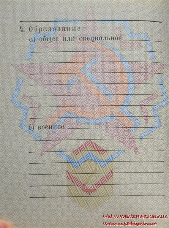 Незаполненный военный билет генерала запаса вооруженных сил СССР