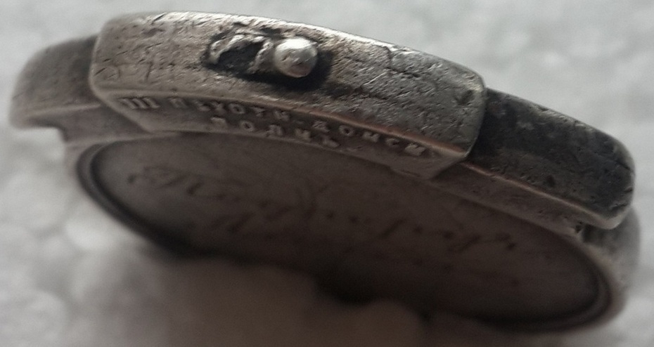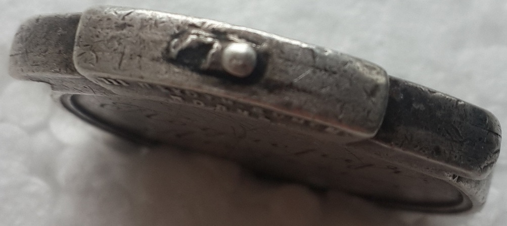Серебро, диам.2,6см Х 3 см., толщина 3мм., вес 17,04 грамма.
