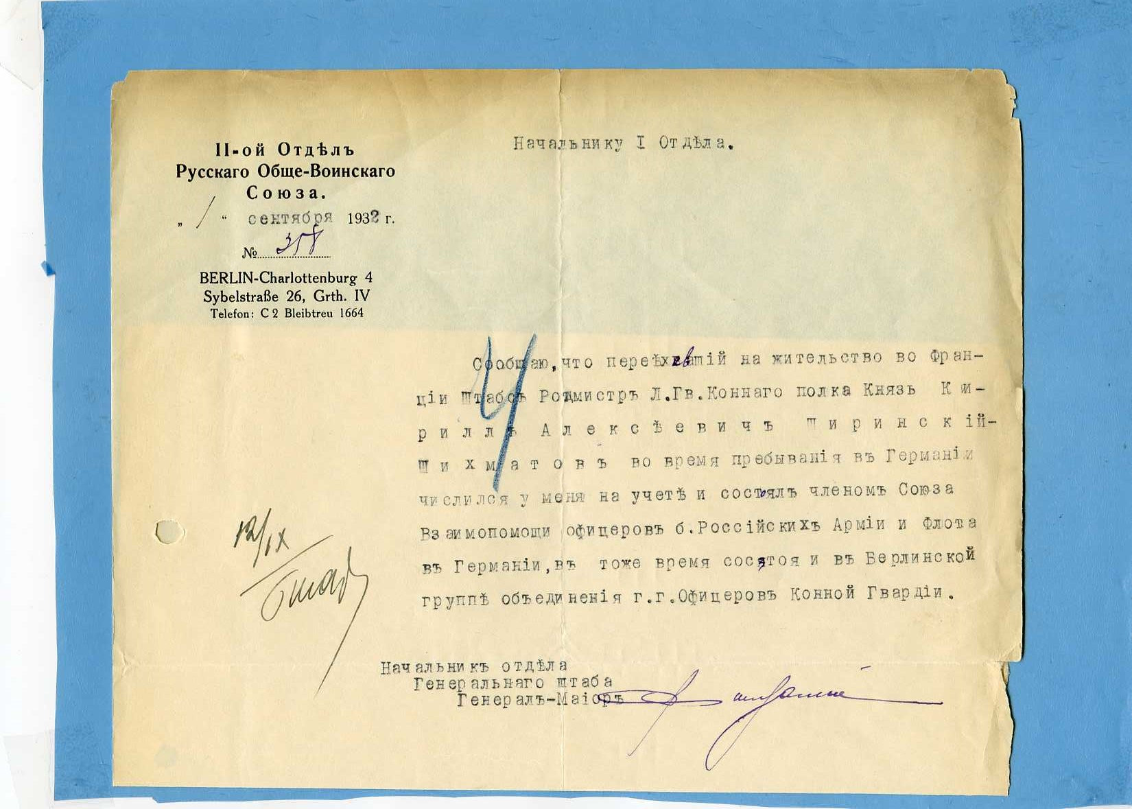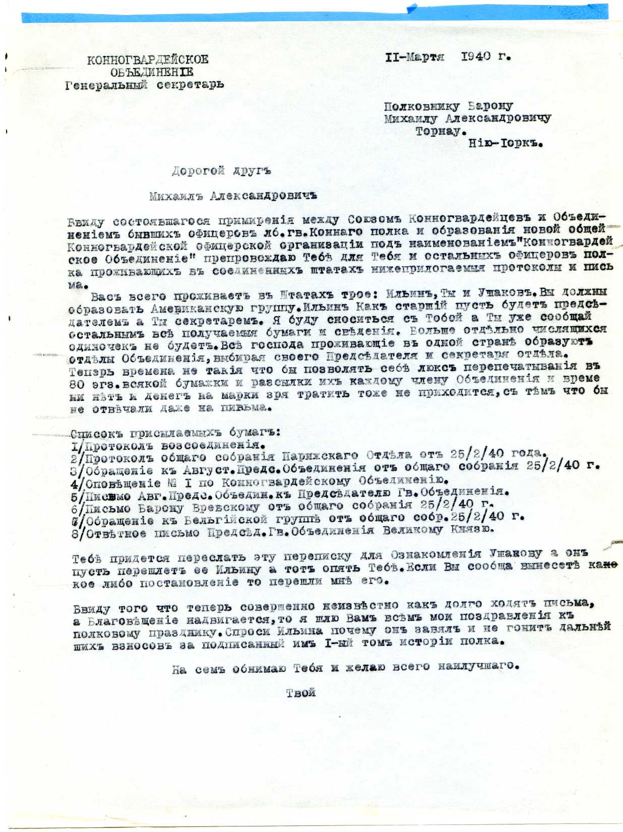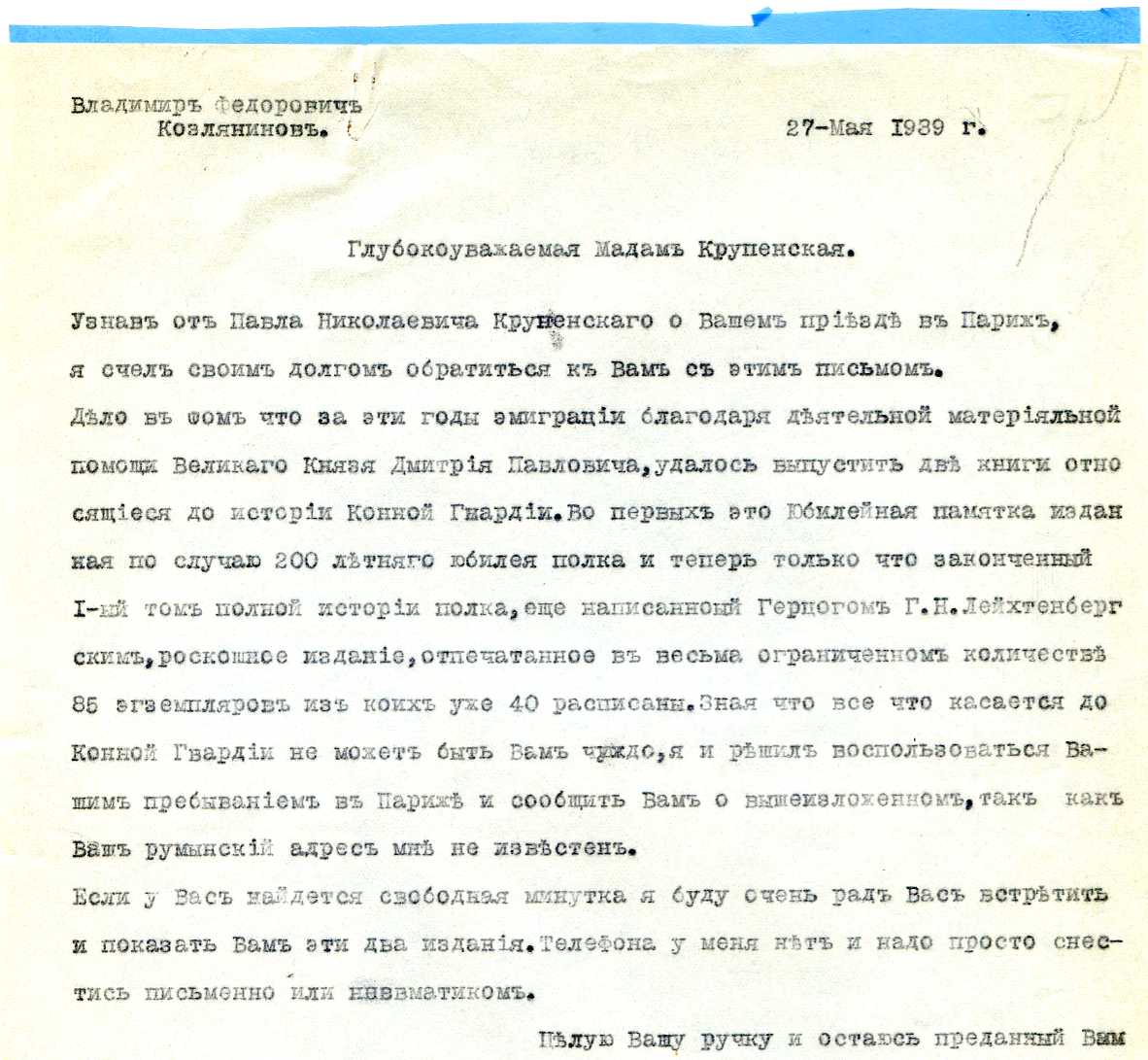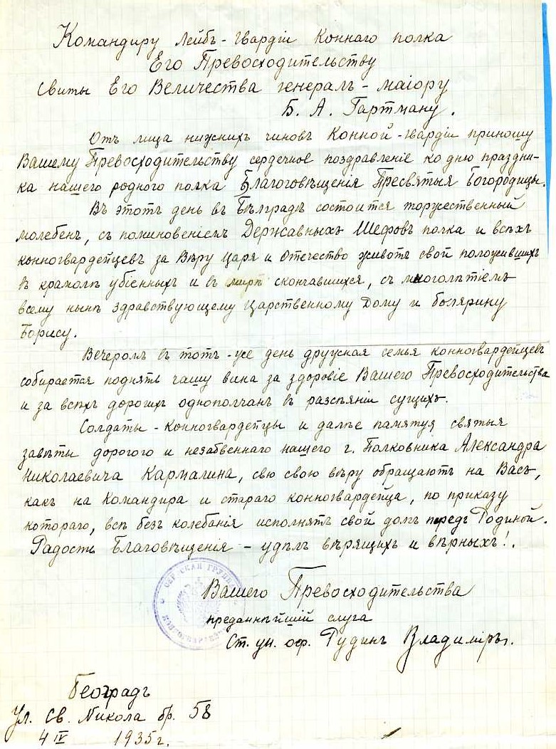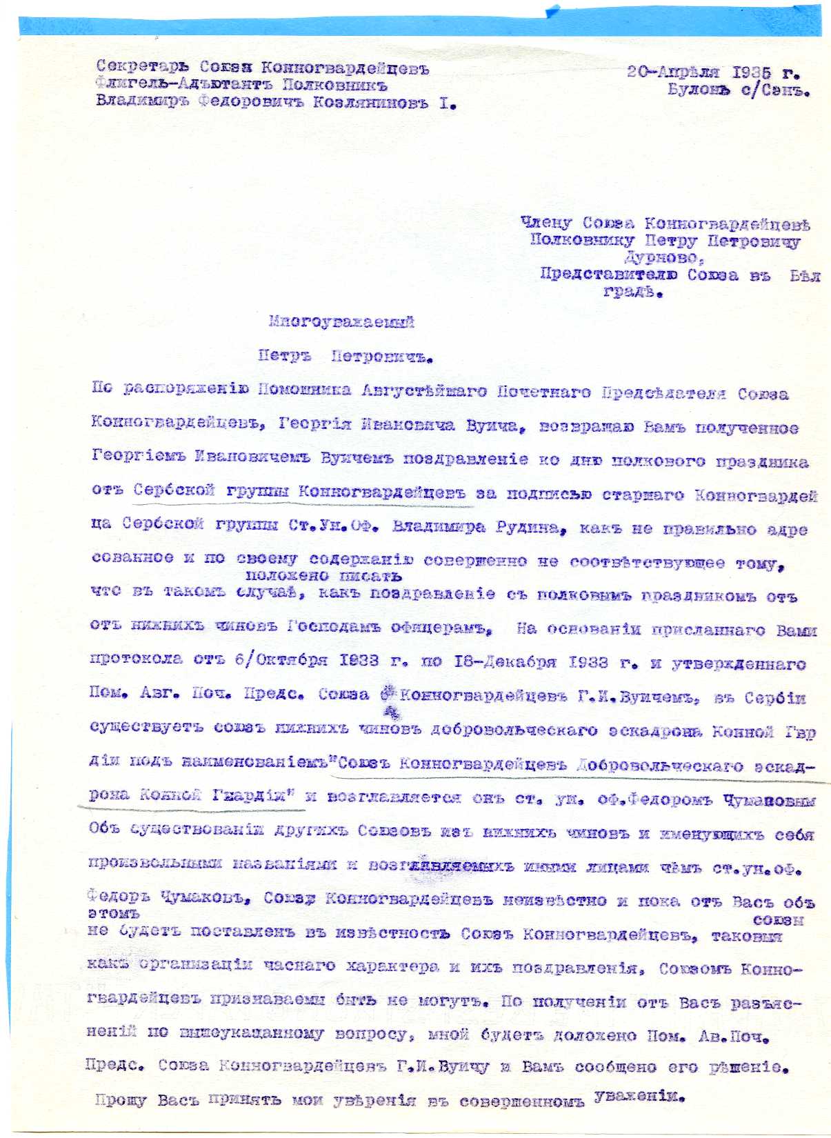 1. Письмо полковнику П.П.Дурново. 20 апреля 1935 г. (формат А.4).