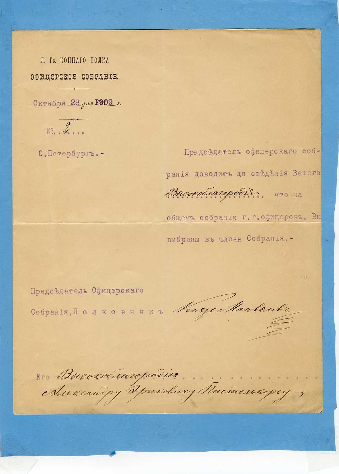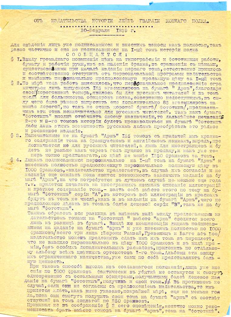 Лот насчитывает 10 доков из архива Союза Конногвардейцев.