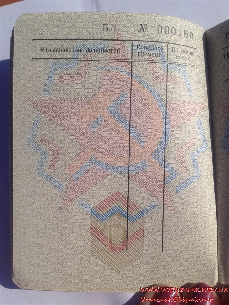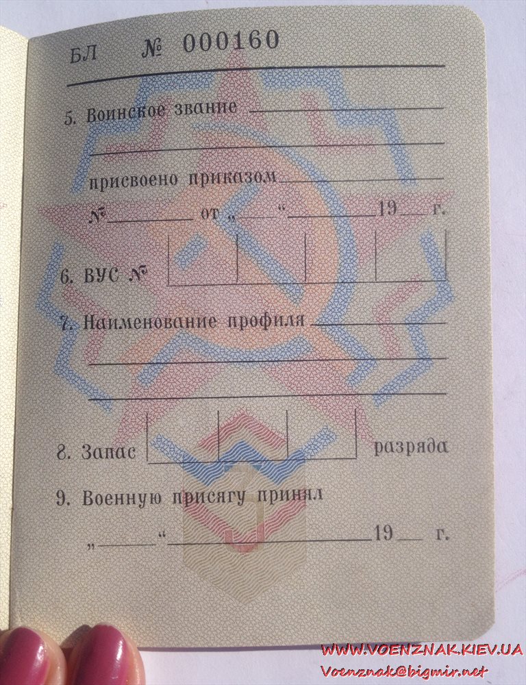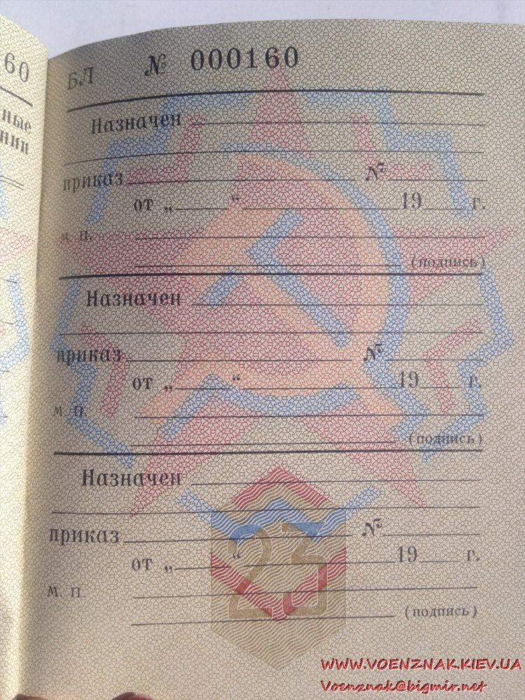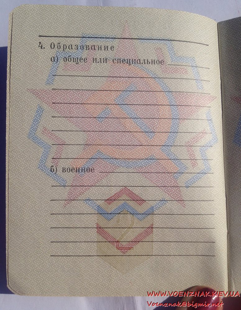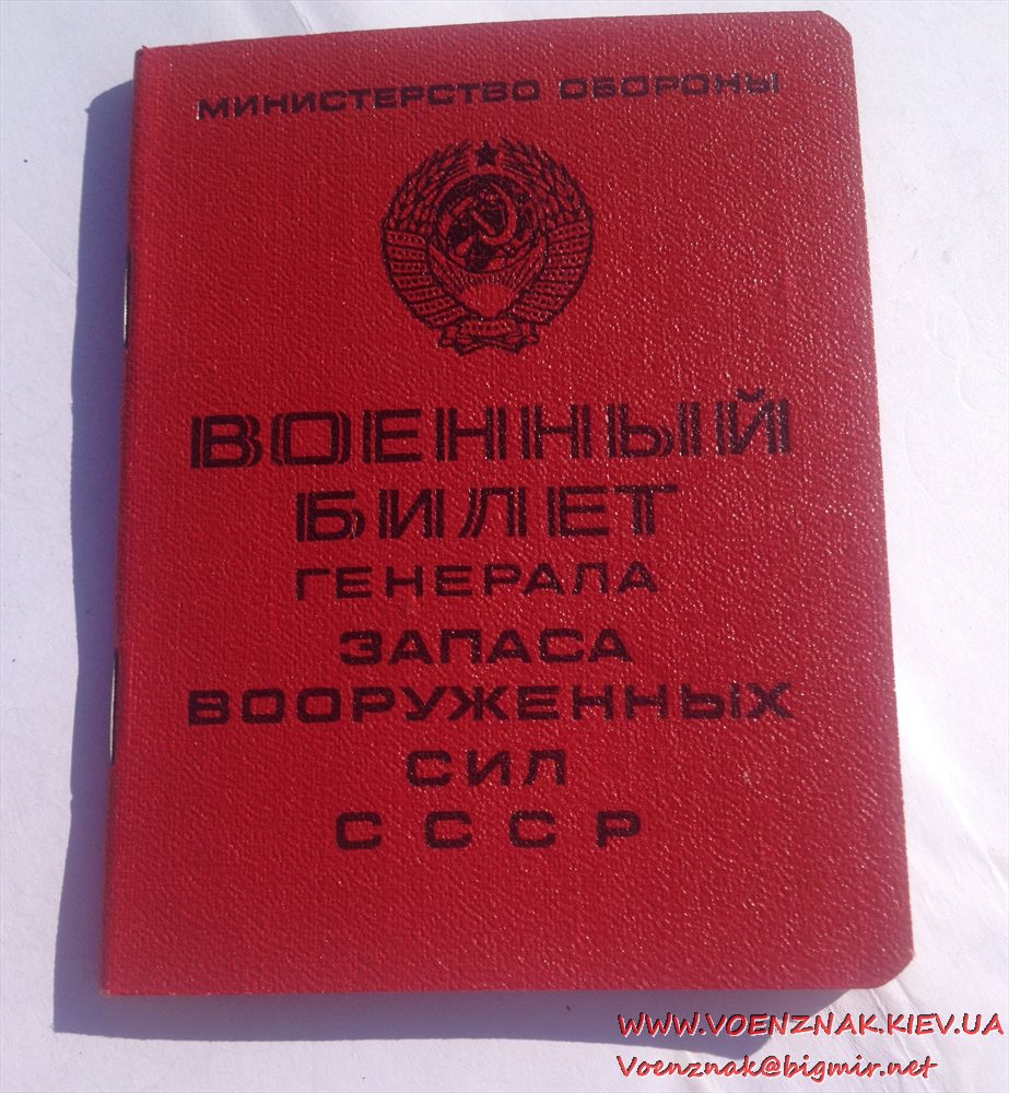 Военный билет генерала запаса вооруженных сил СССР (незаполненный)