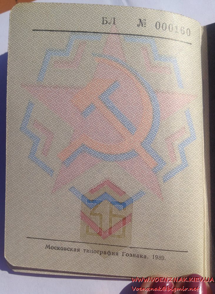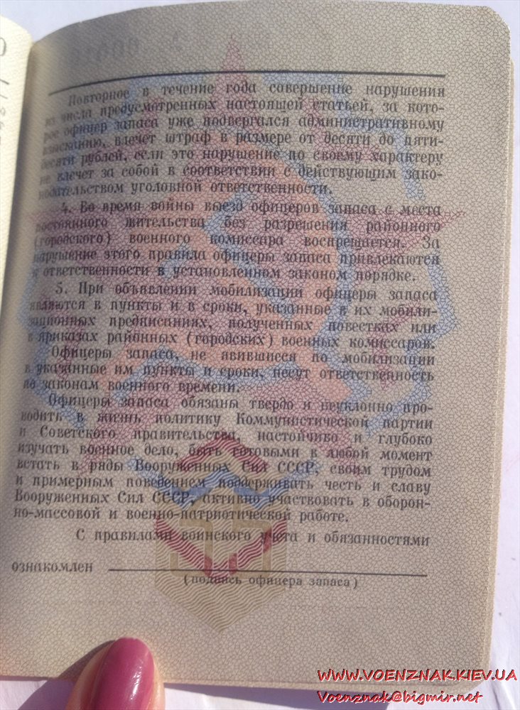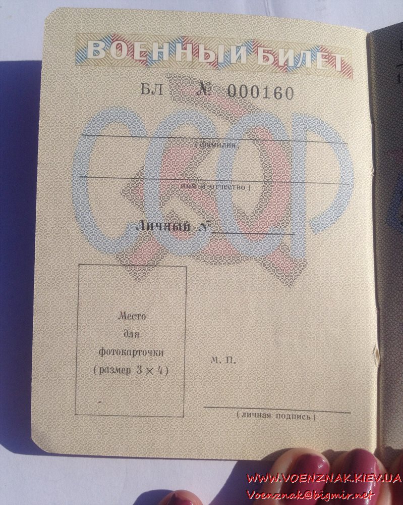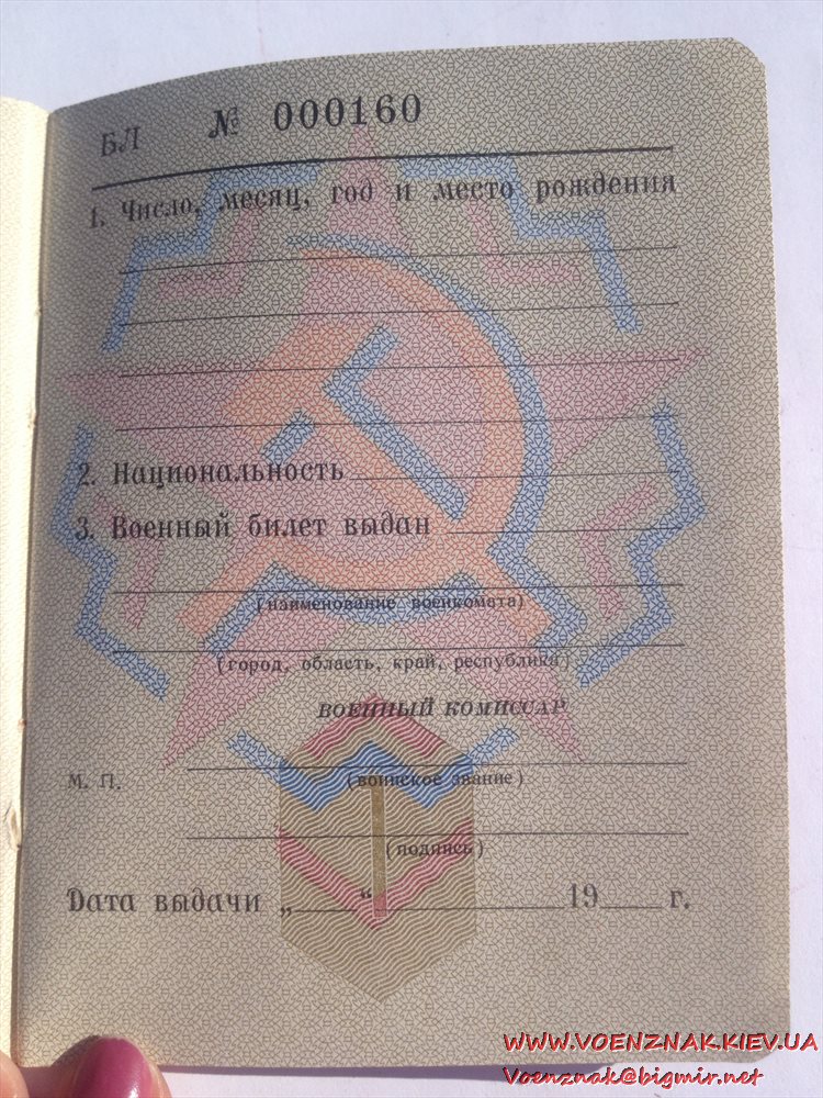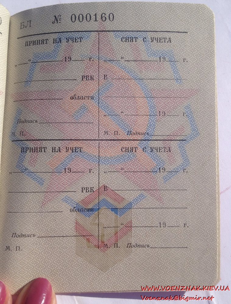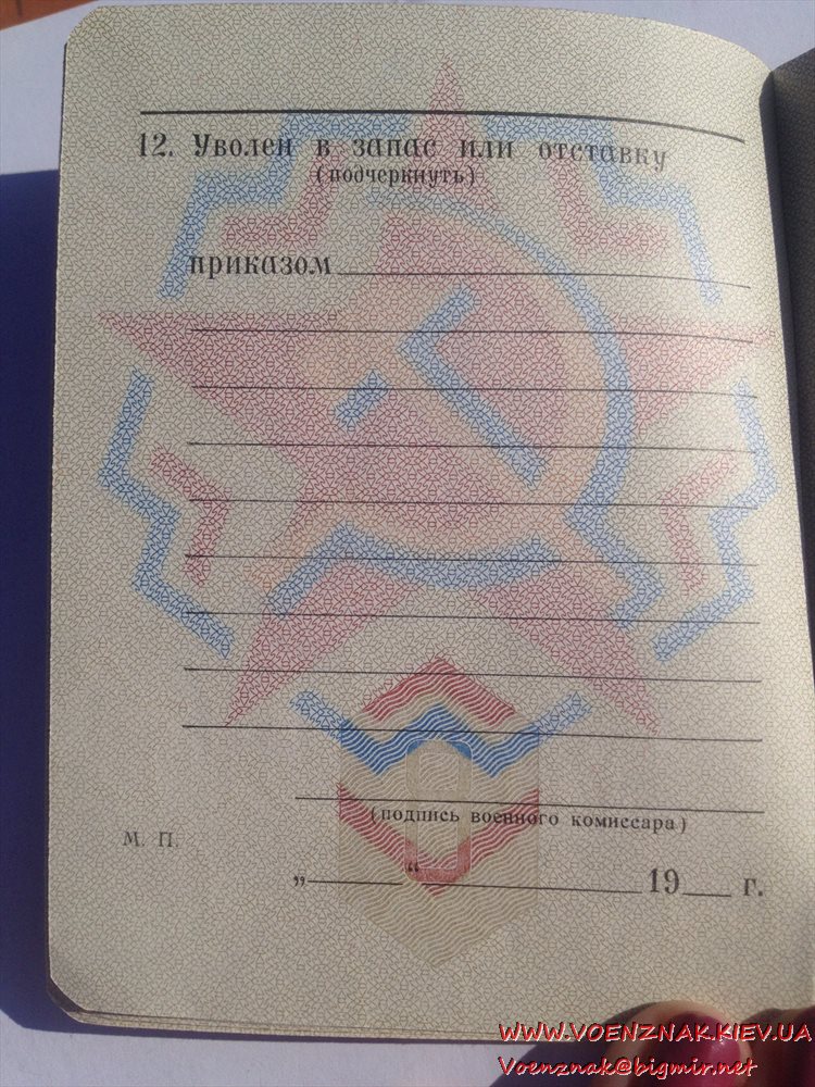Военный билет генерала запаса вооруженных сил СССР (незаполненный)