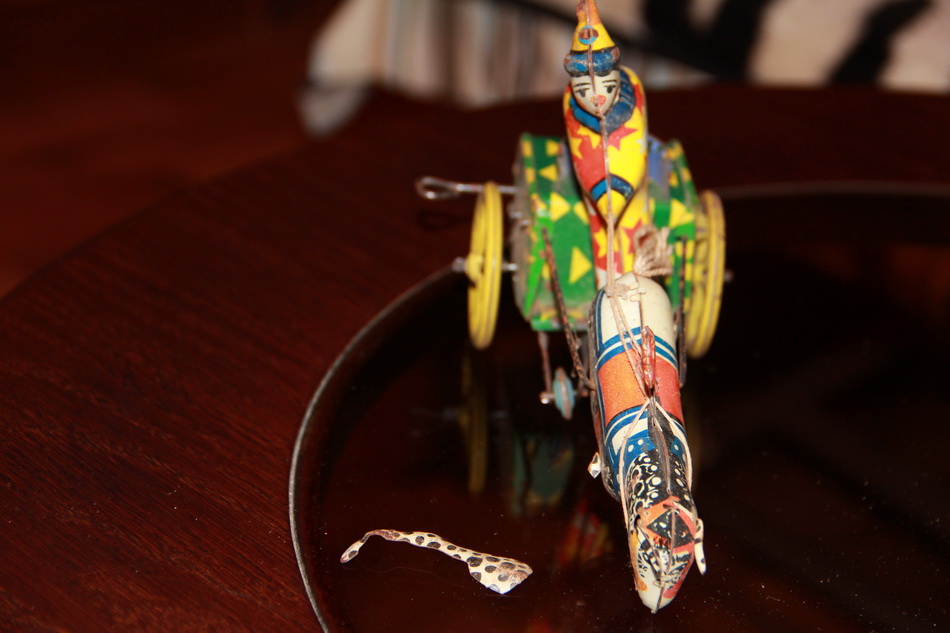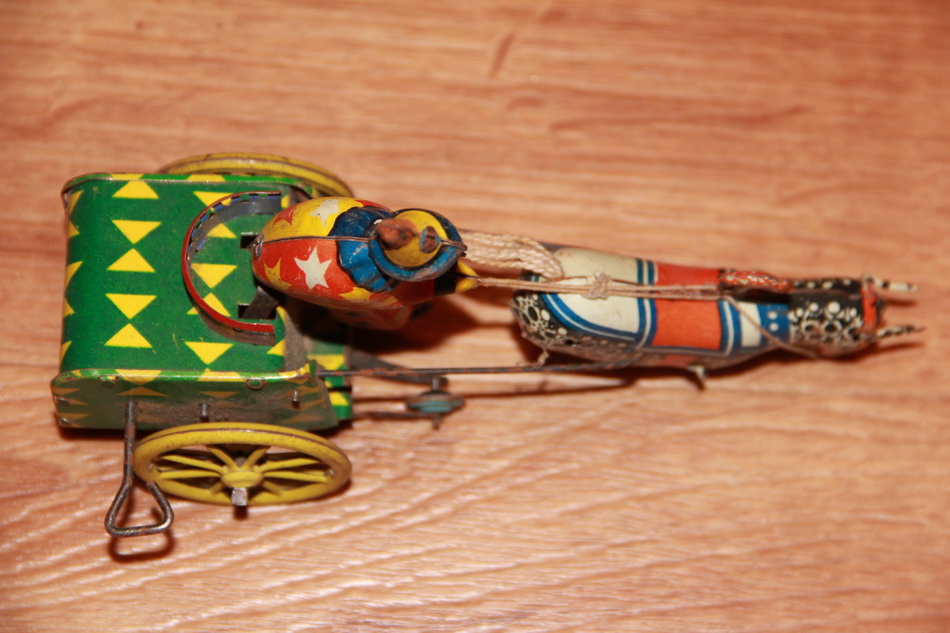 Все работает, только у конЫка нога отломана, но есть в наличии. На бег повозки и скачки не влияет.