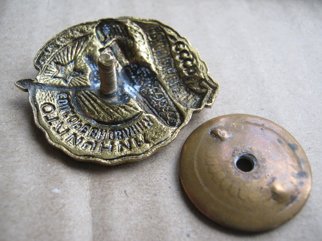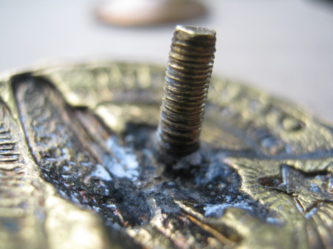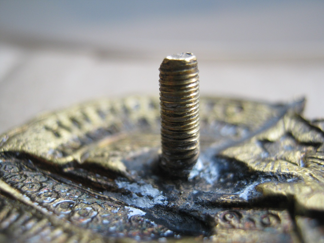Потемнение в верхнем левом углу флага. Гайка не родная.