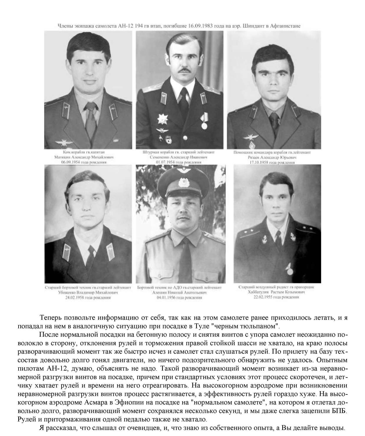 Погибшие члены экипажа: