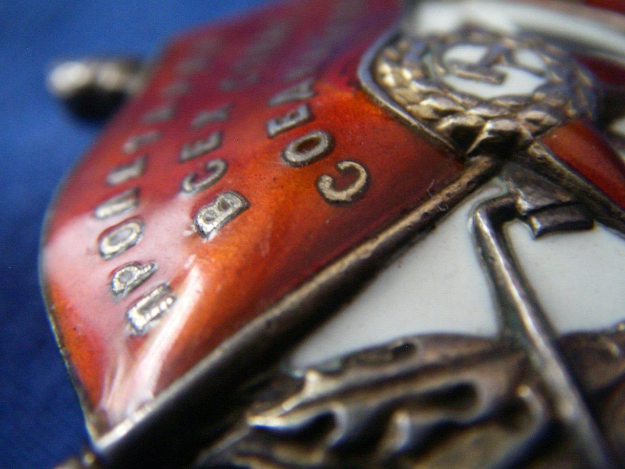 2 маленькие подмазки (на снимке видно) легко можно убрать. Чешуйки по правому краю знамени "играют" только под солнцем под углом.