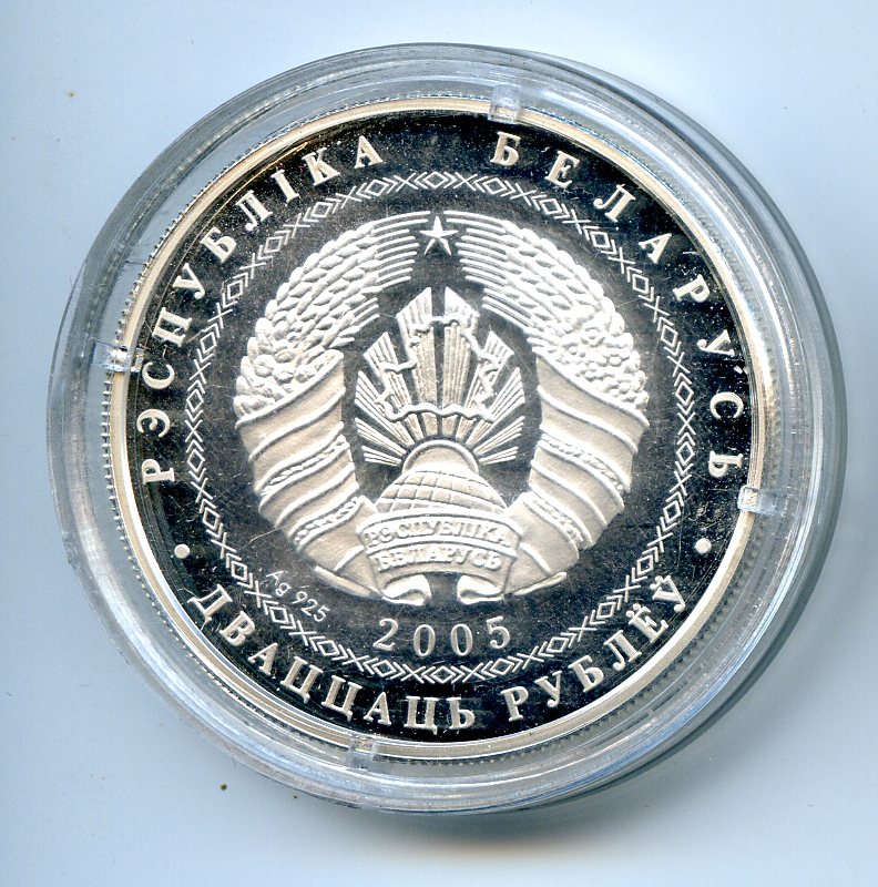 20 рублей 2005 года. Серебро 925 пробы. Беларусь.