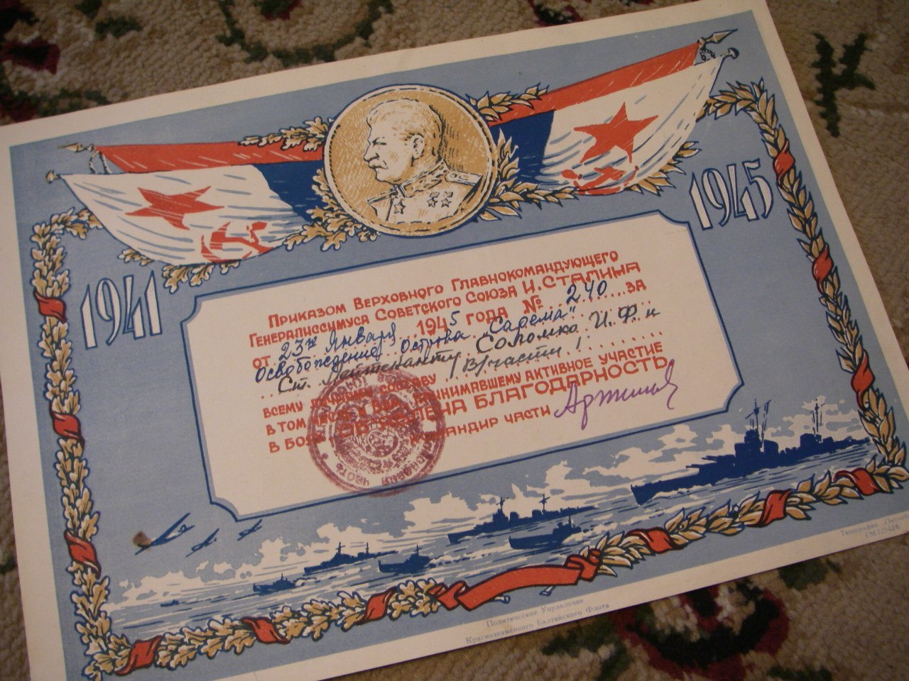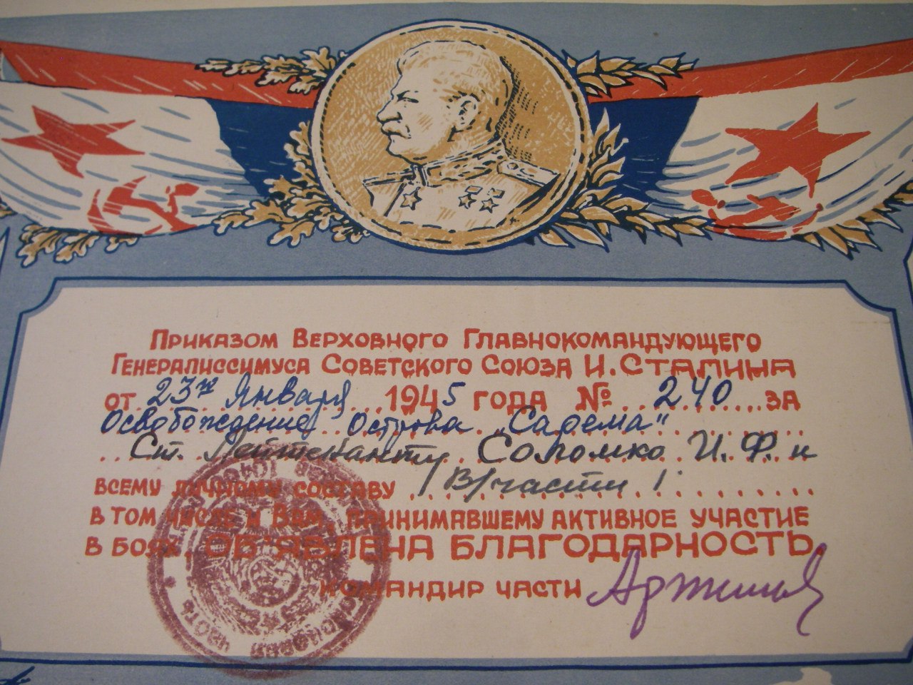 Ст.лейтенант и/с Соломко Иван Федорович - начальник финансовой части Береговой Базы 1-й Бригады Траления ТМОР КБФ.