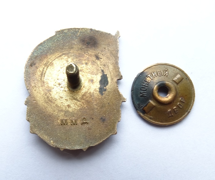 Лот в РФ.,трещинка по голубой эмали и две 'микроцарапки" по красной эмали на знамени под "кого" в слове-социалистического