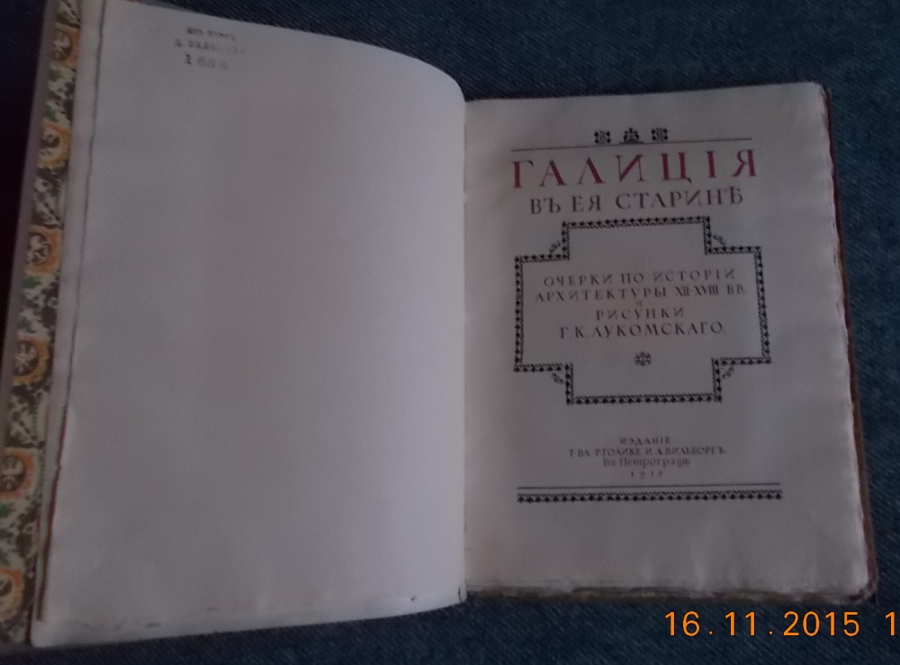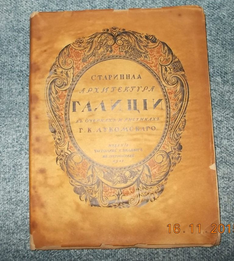 Г.Лукомский. Старинная архитектура Галиции в очерках и рисунках Лукомского. Книга практически в идеальном состоянии в суперобложке. Была подмочка задней крышки.