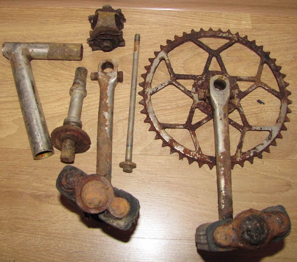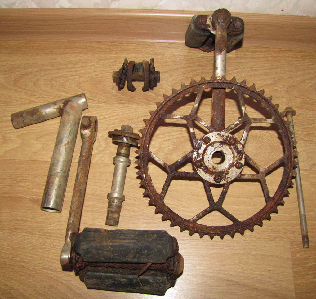 Прошу админов перенести тему, если что, не знал куда поместить. Откопал спрятанный в годы ВОВ велосипед МВЗ, номер рамы 10-08, снял запчасти (только те, что на фото) ,их состояние нормальное, местами покрыты ржавой пленкой, остальное погнило,МПЦ 2000 р, дорога ваша, само фото велосипеда и номера рамы только для наглядности.