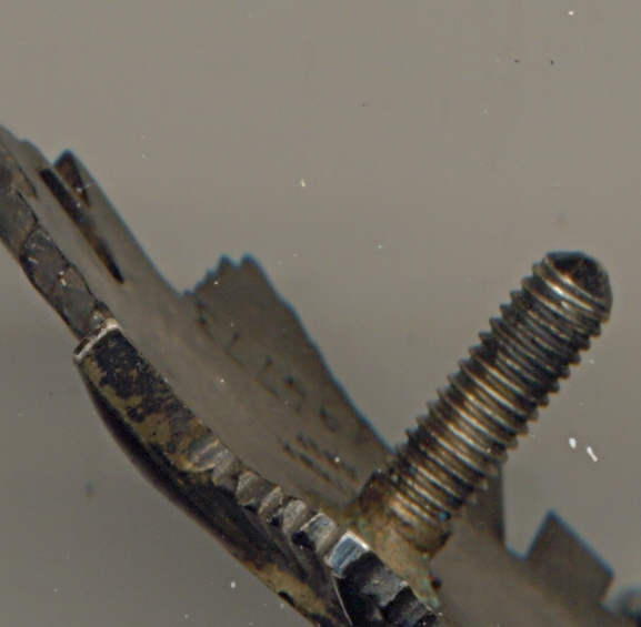 вокруг места от крепления сима поверхностный пластинчатый скол круглый размером в радиусе около пол сантиметра...
