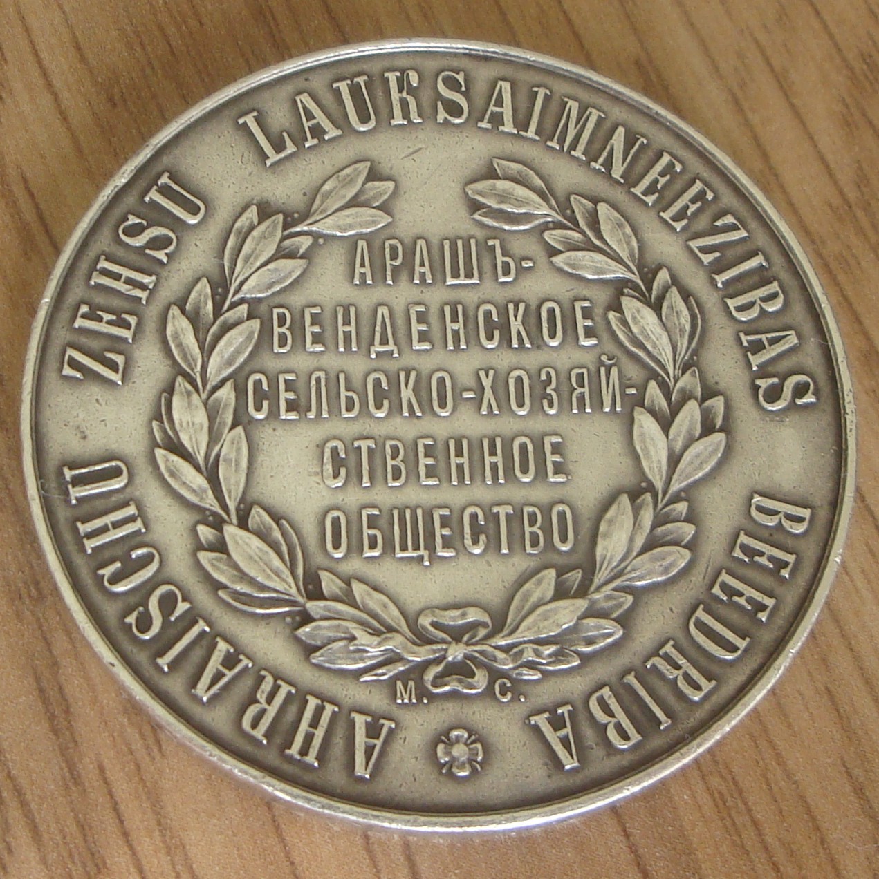 Известный медальер -- Михаил Скуднов. Его инициалы под венком. ( М. С.)