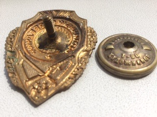 Знак в хорошем состоянии,есть чешуйка справа вверху на ленточки,больше проблем по эмали нет,винт и резьба в норме,в РФ+5$,предложите в долларах.