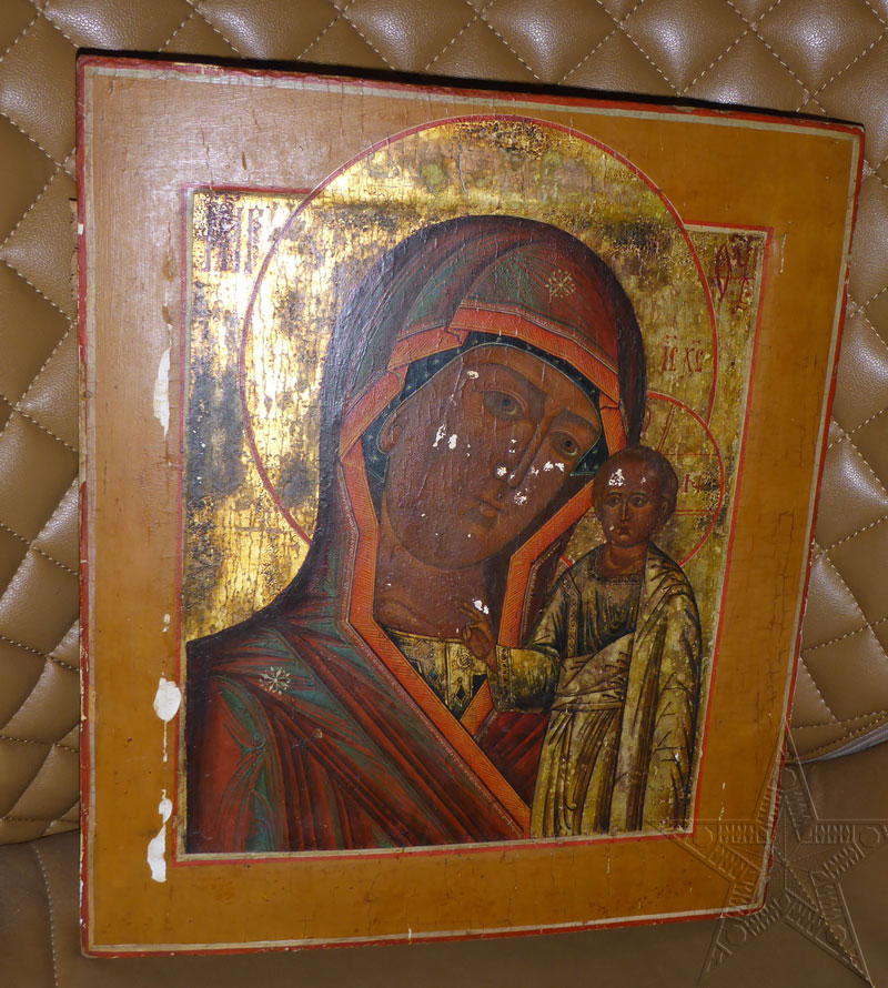Икона Казанская Божья Матерь Палех. Крайне редкая икона. Высокий уровень письма. Размер 36х30 см. Без реставраций. Очень хорошее состояние. Оригинал.