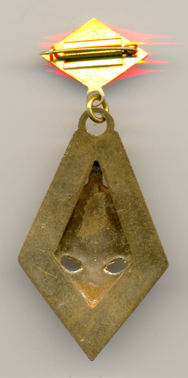 Латунный, с горячей эмалью. Сохранность безупречная.