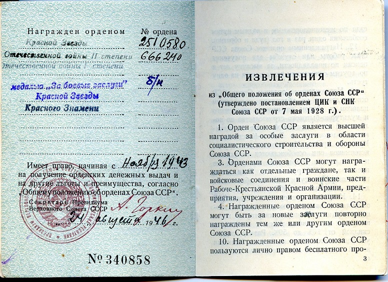 Орден "Отечественная Война" 2 степени.