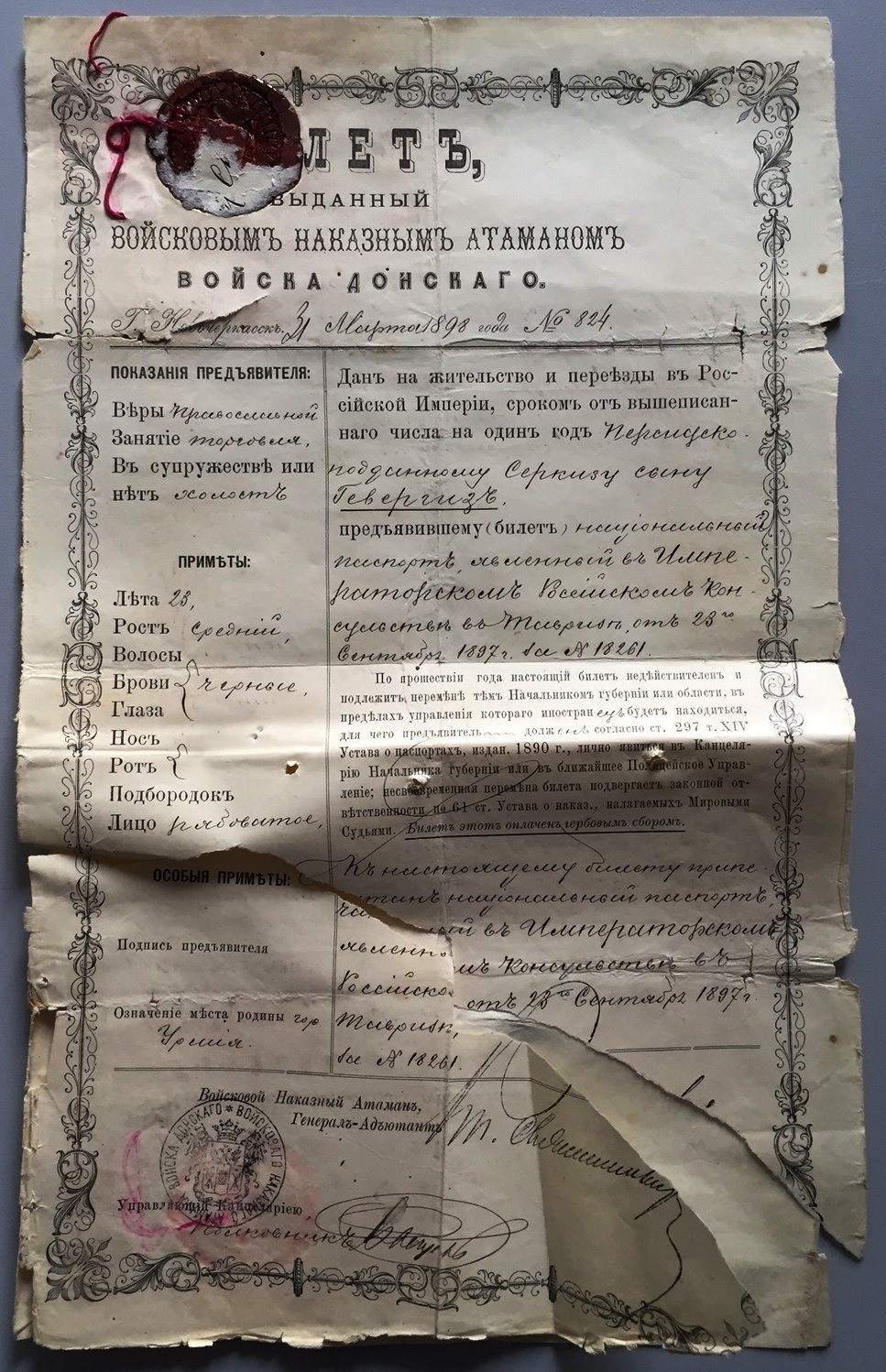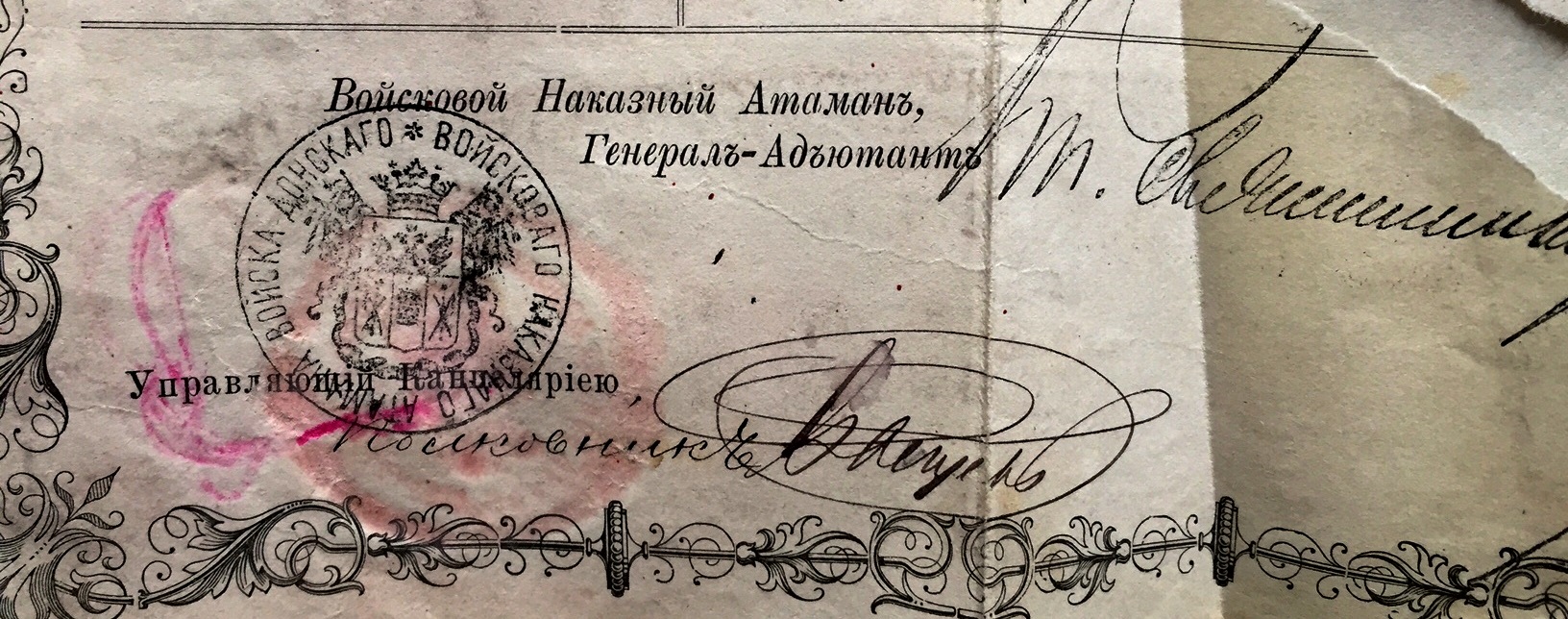 Подпись войскового наказного атамана, генерал-адьютанта.