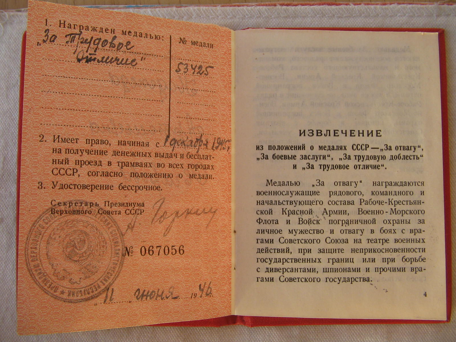 Медали Серп и Молот, За Трудовую Доблесть, За Трудовое Отличие, За Доблестный Труд в Великой Отечественной Войне,За Восстановление Предприятий Чёрной Металлургии Юга, За Восстановление Угольных Шахт Донбасса, За Освоение Целинных Земель, За Строительство БАМ, За Преобразование Нечерноземья РСФСР, За Освоение Недр и Развитие Нефтегазового Комплекса Западной Сибири, Ветеран Труда